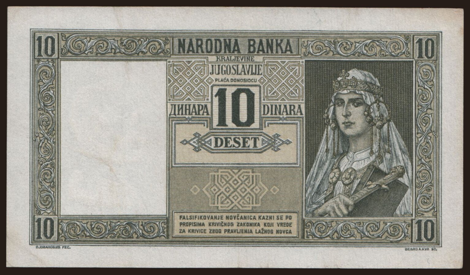 10 dinara, 1939