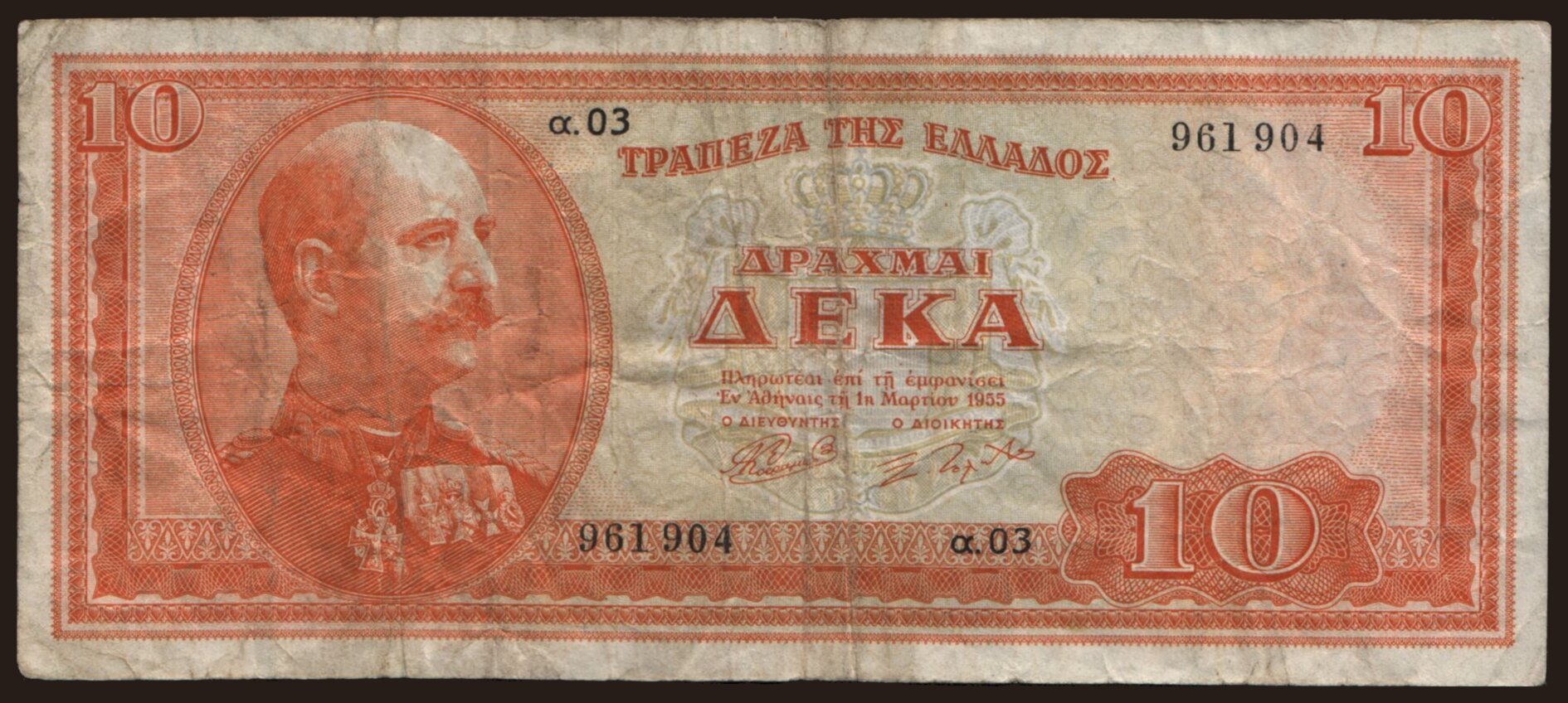 10 drachmai, 1955
