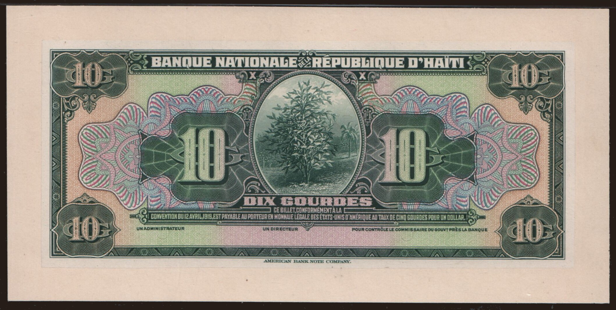10 gourdes, 1919 (1967), SPECIMEN
