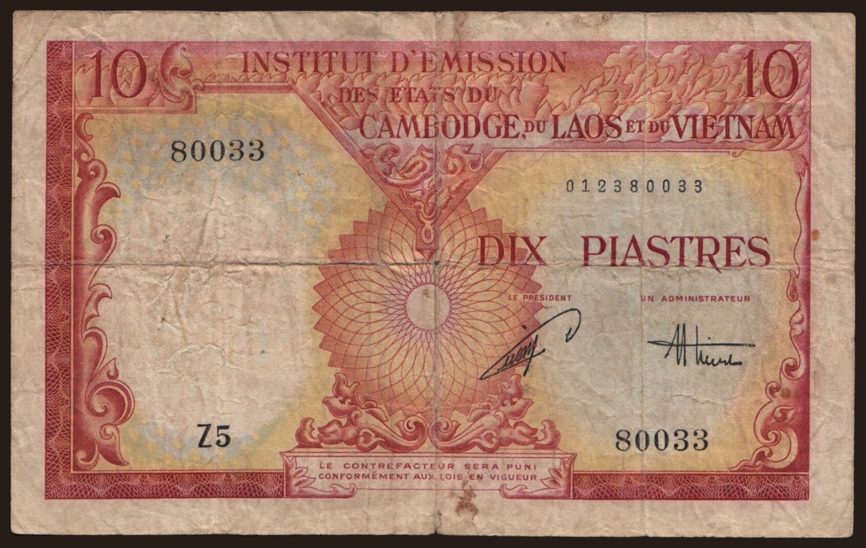 10 piastres, 1953