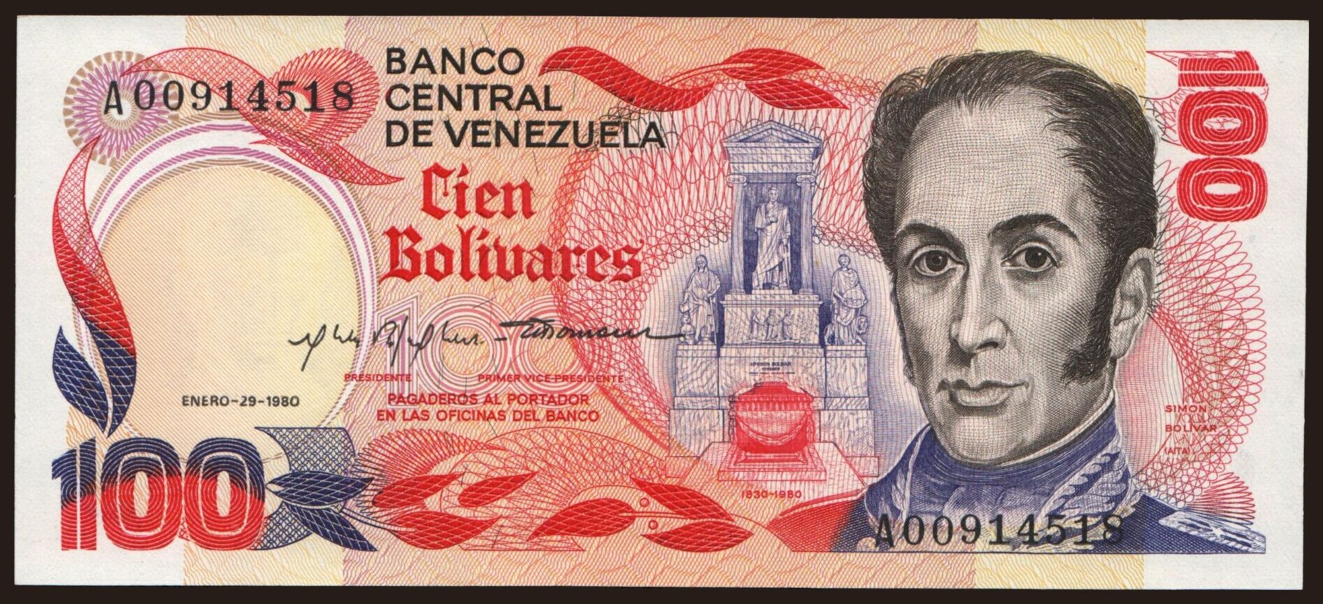 100 bolivares, 1980