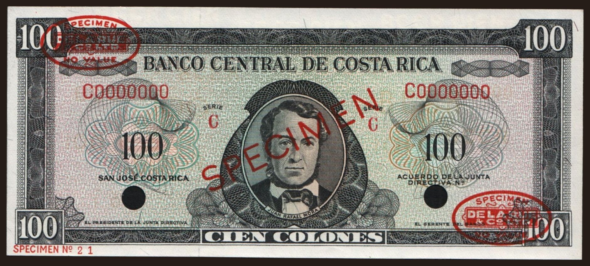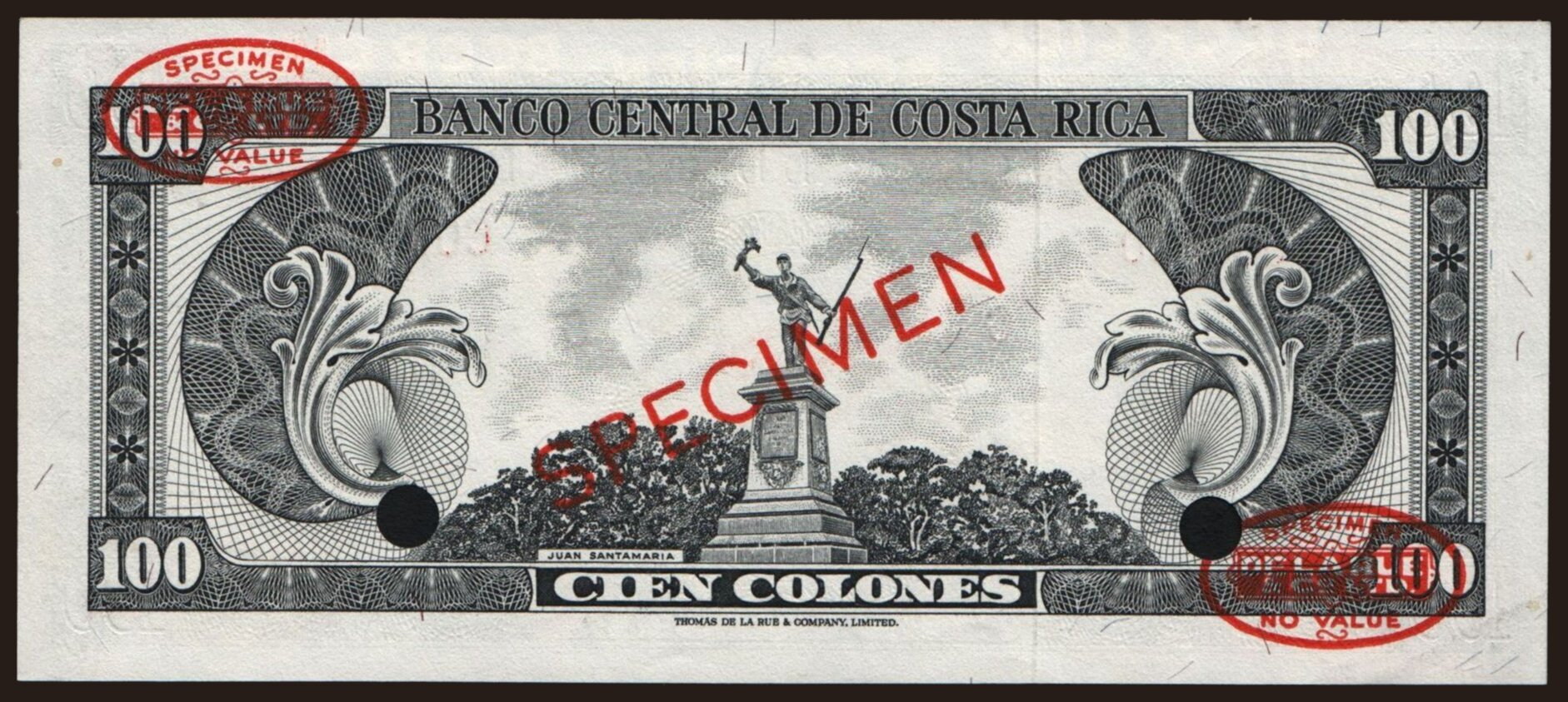100 colones, 1966, SPECIMEN