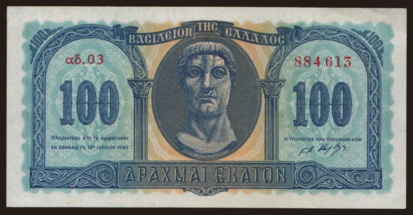 100 drachmai, 1950