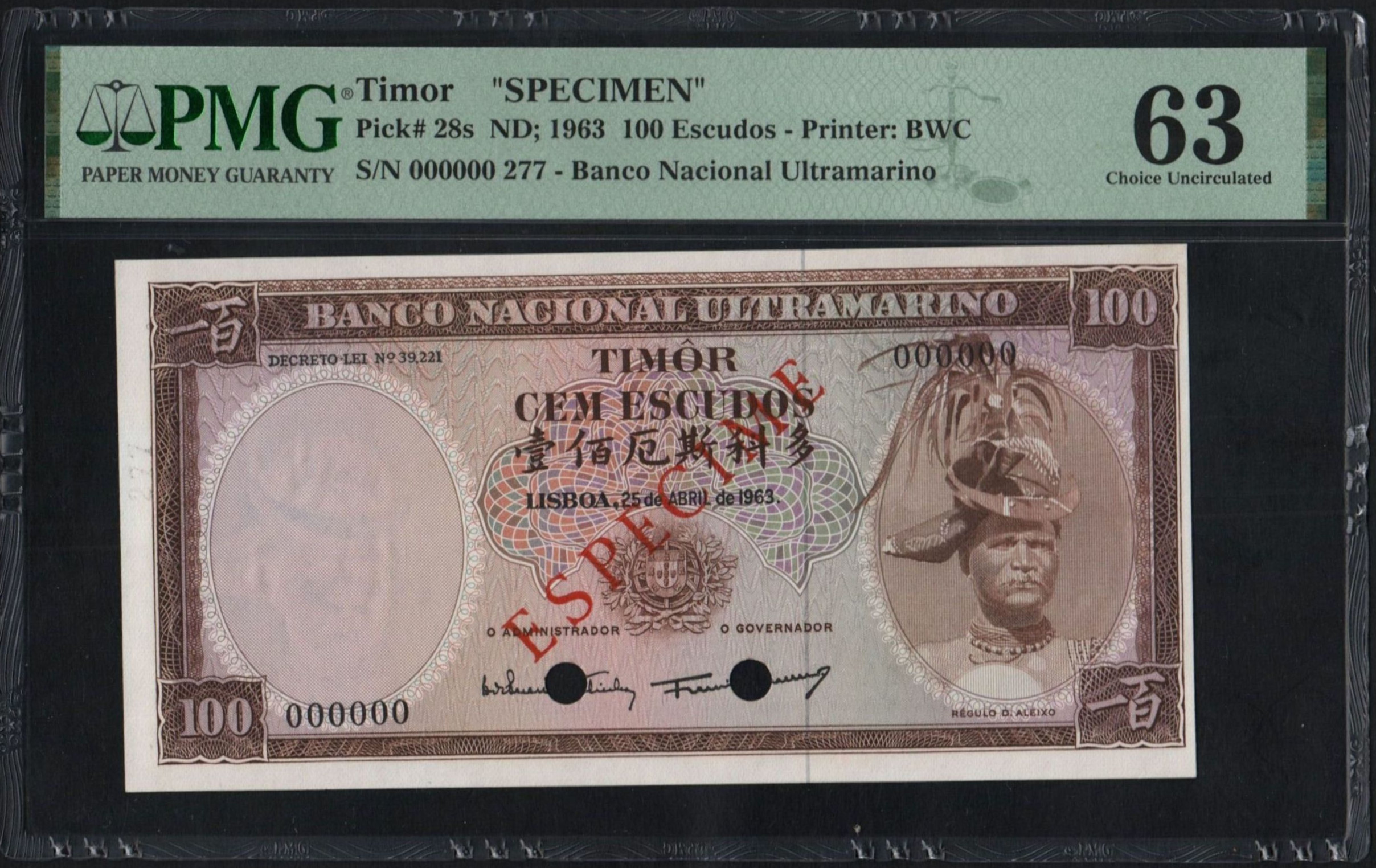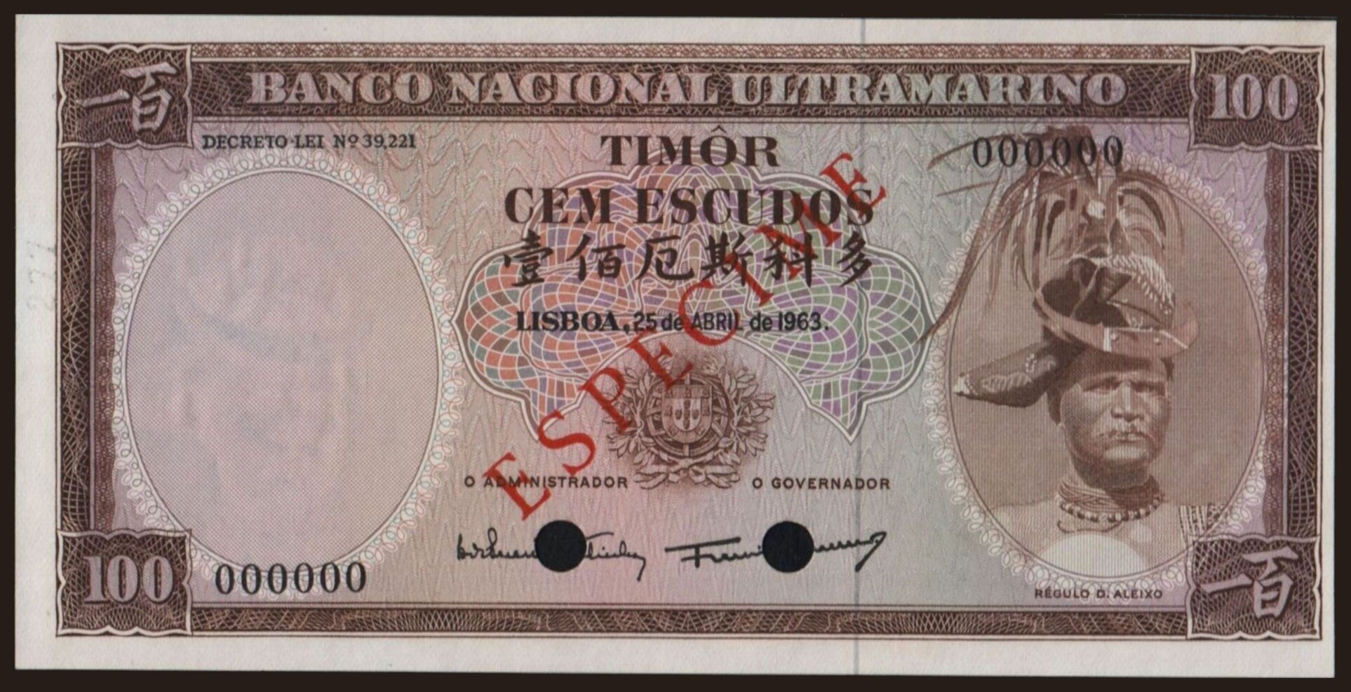 100 escudos, 1963, SPECIMEN