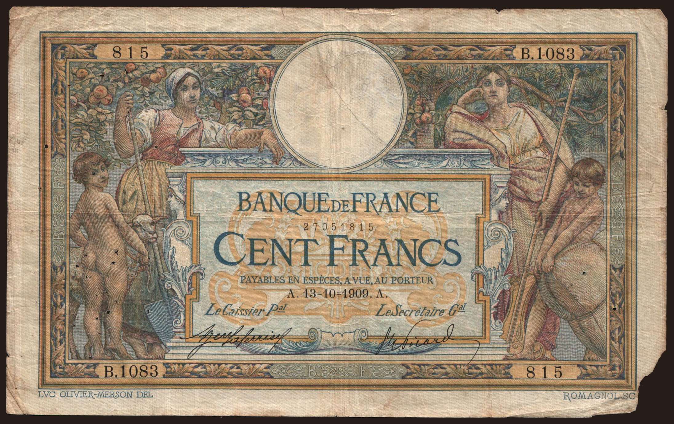 100 francs, 1909