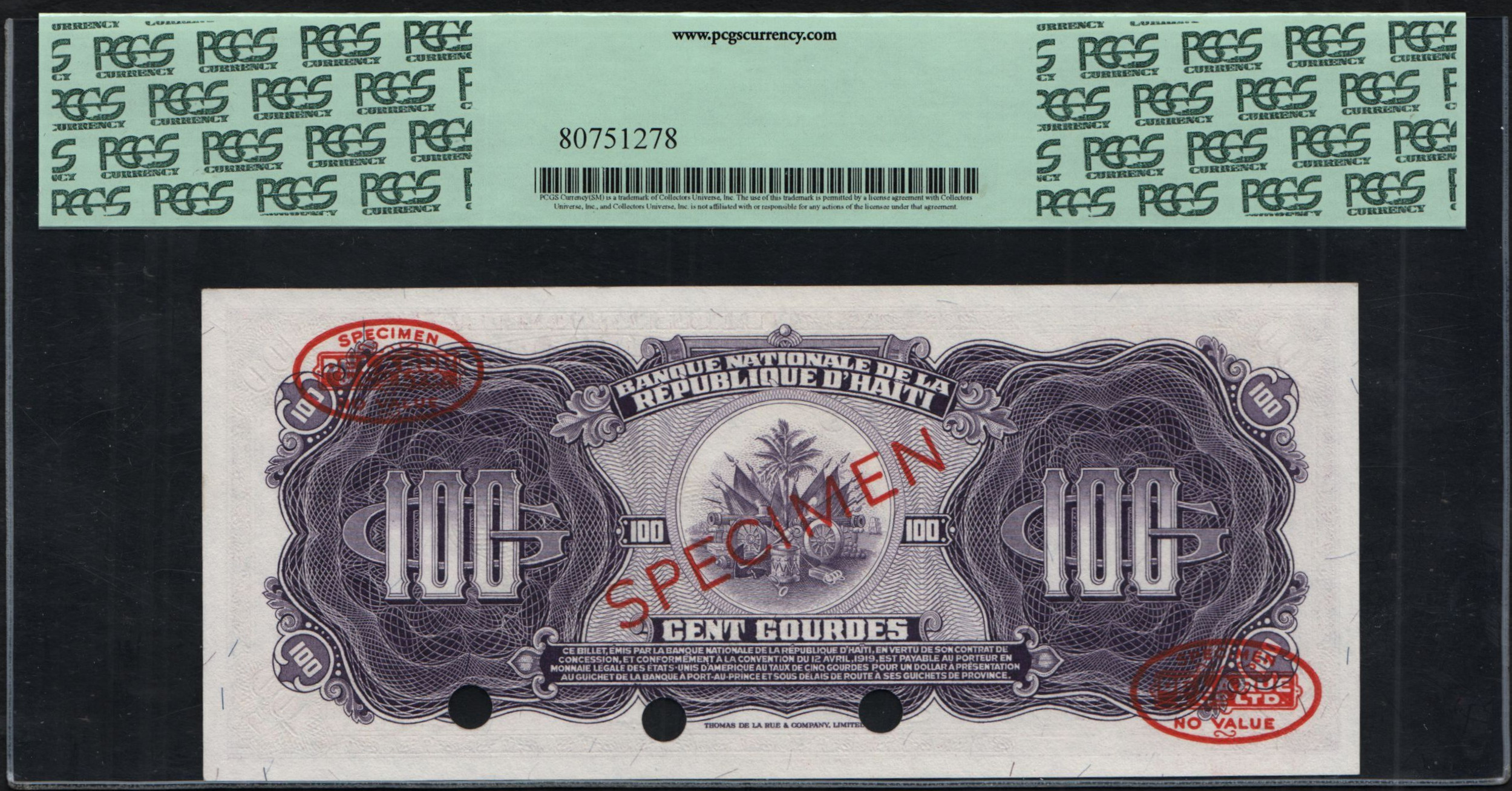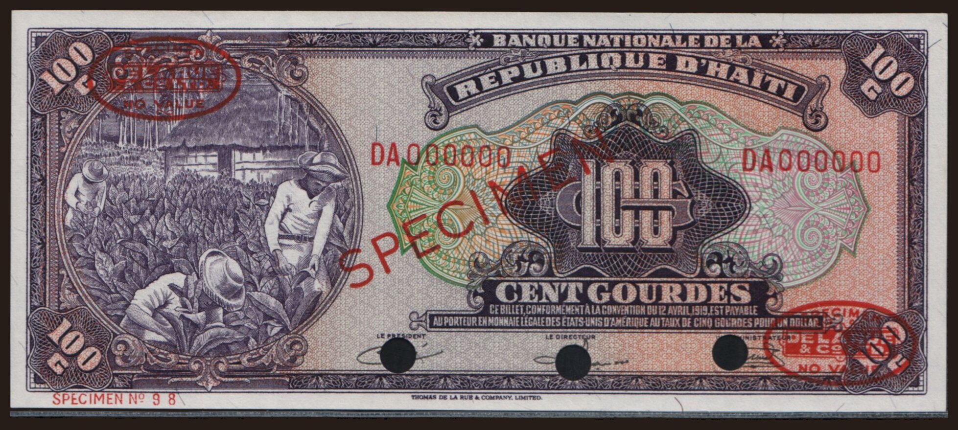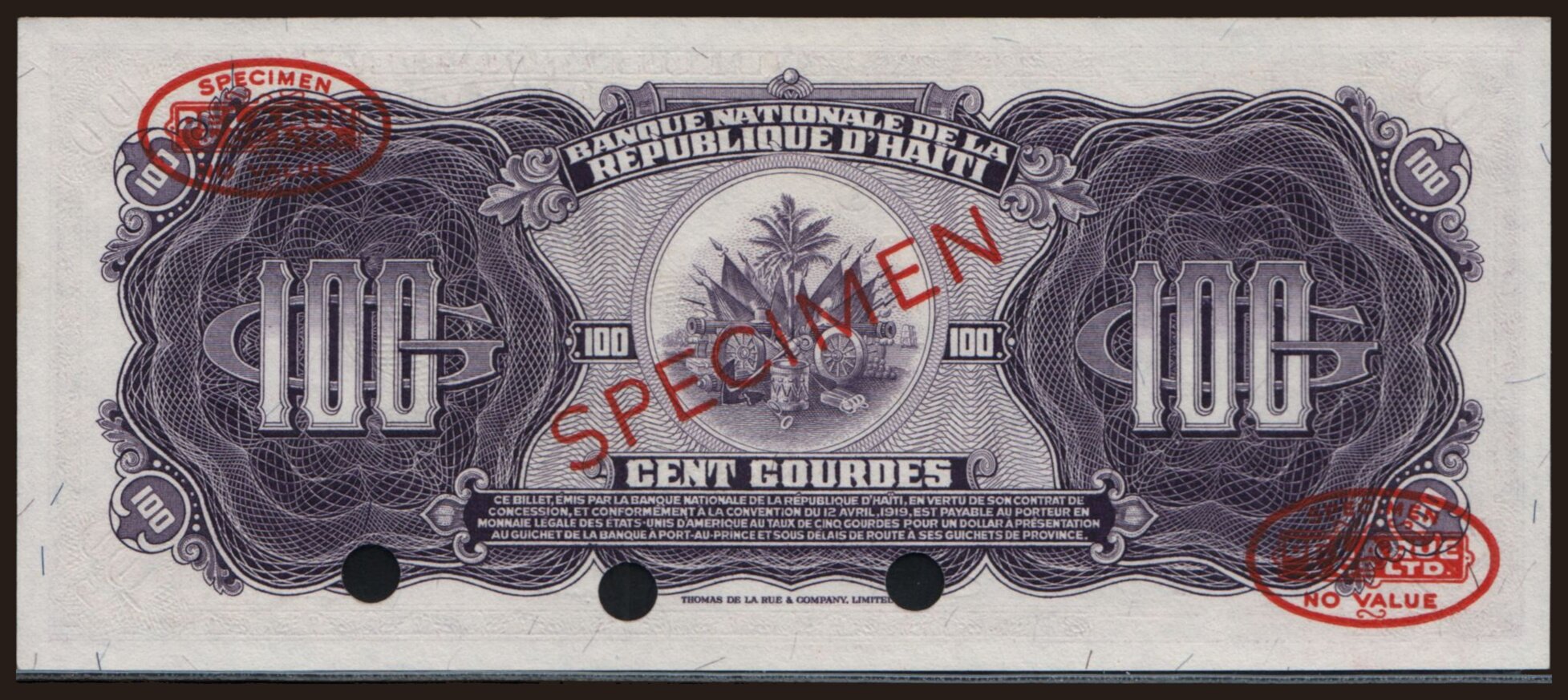 100 gourdes, 1919 (1964), SPECIMEN