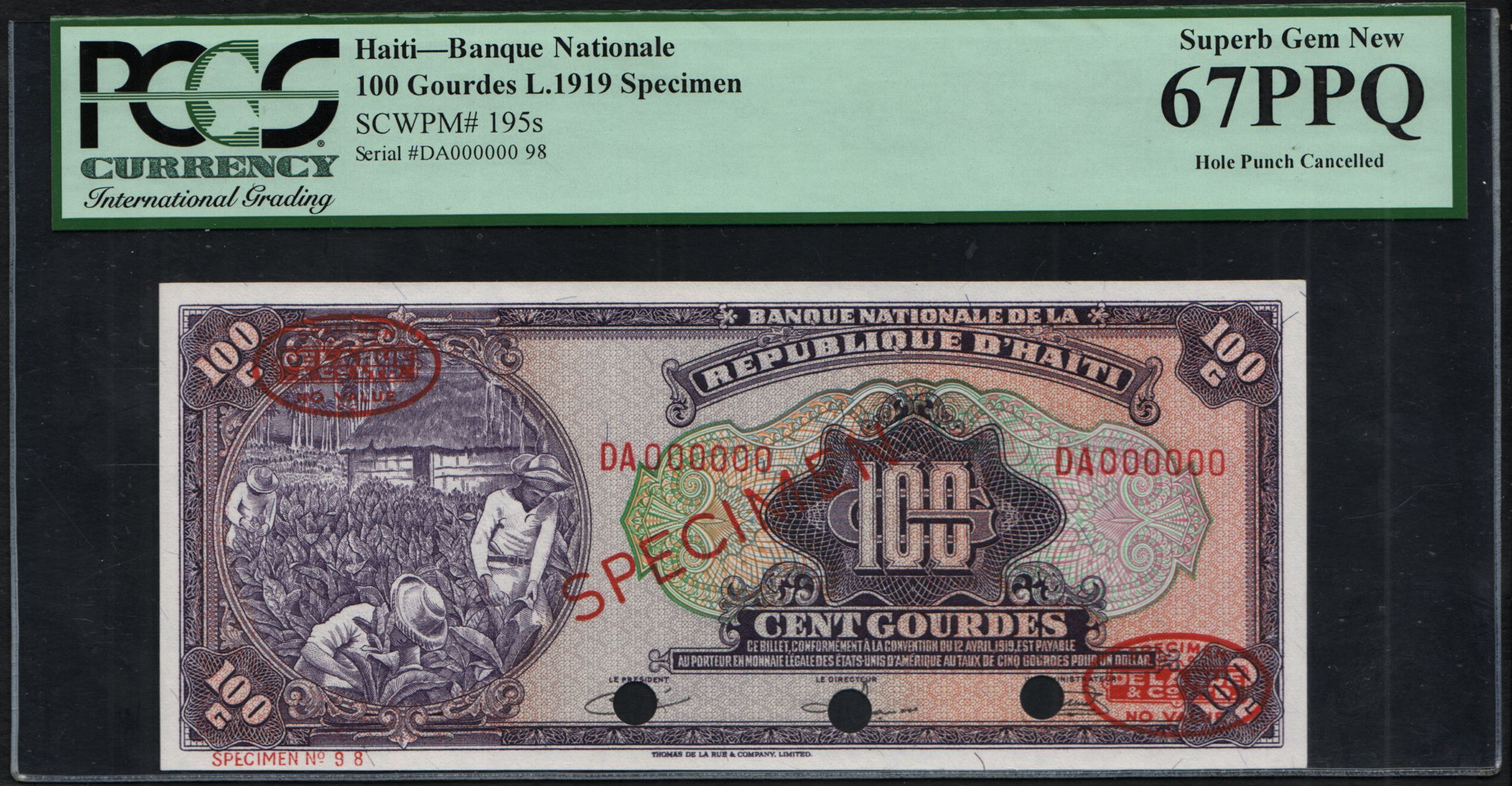 100 gourdes, 1919 (1967), SPECIMEN