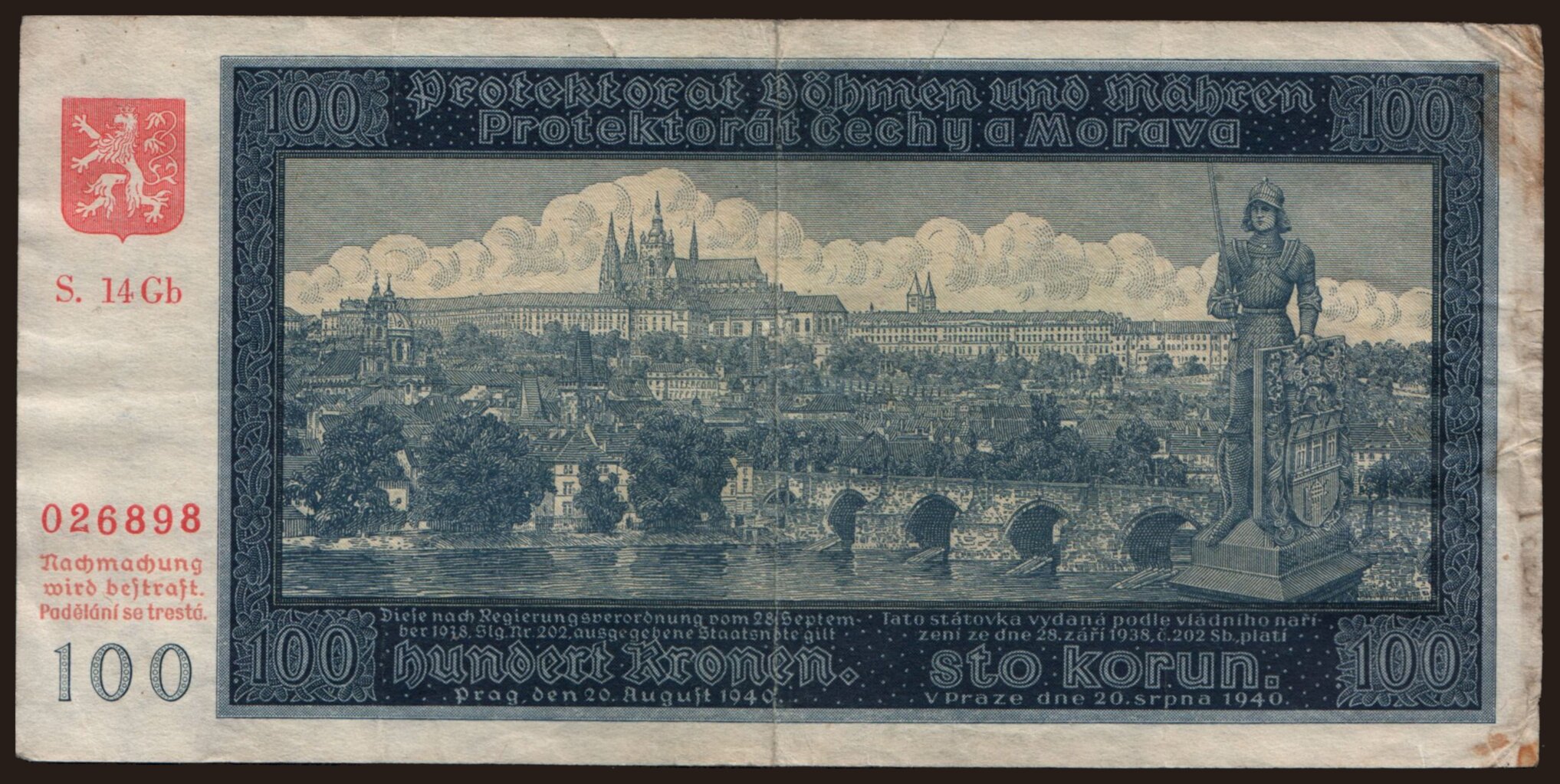 100 korun, 1940