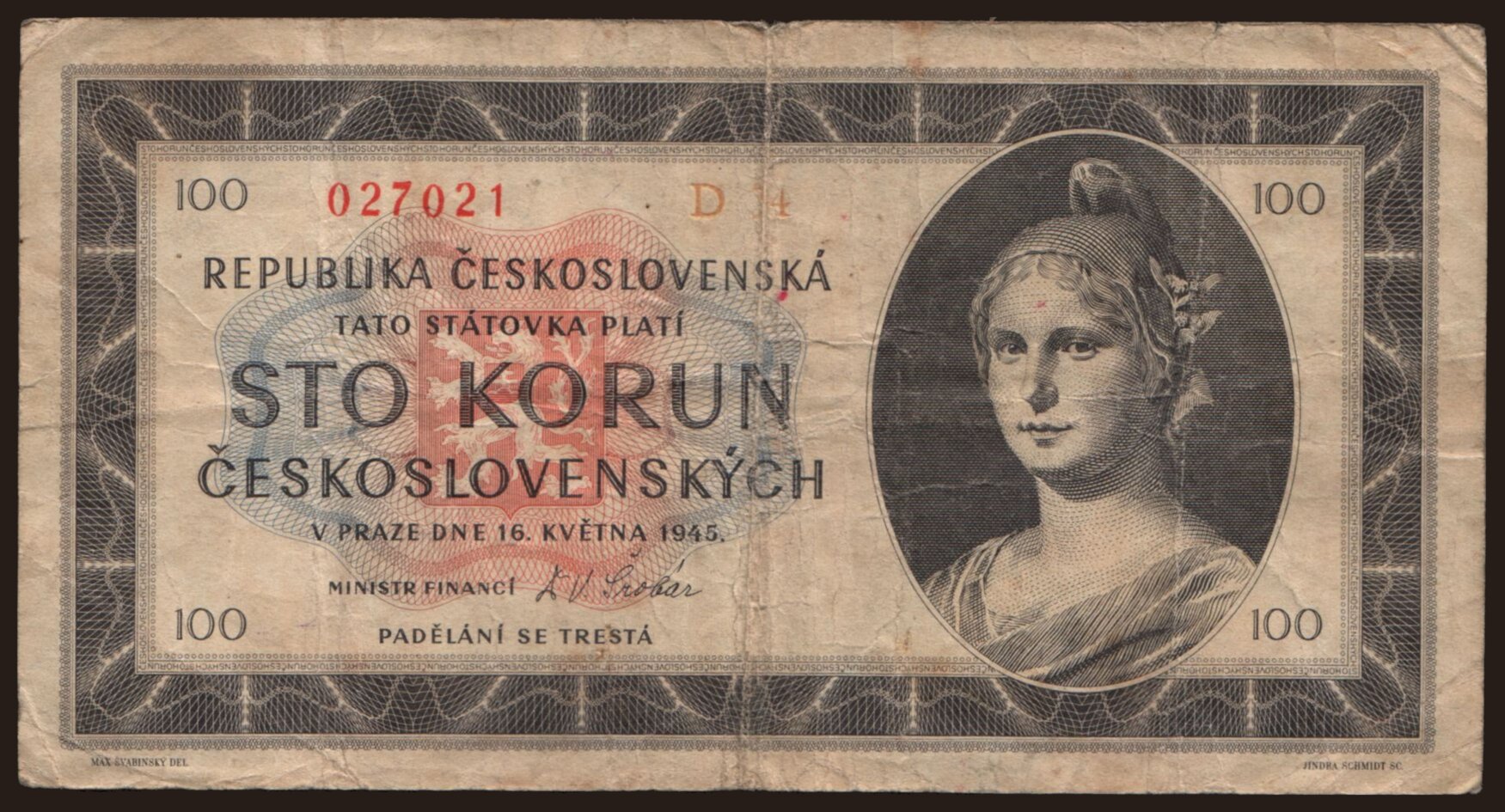 100 korun, 1945