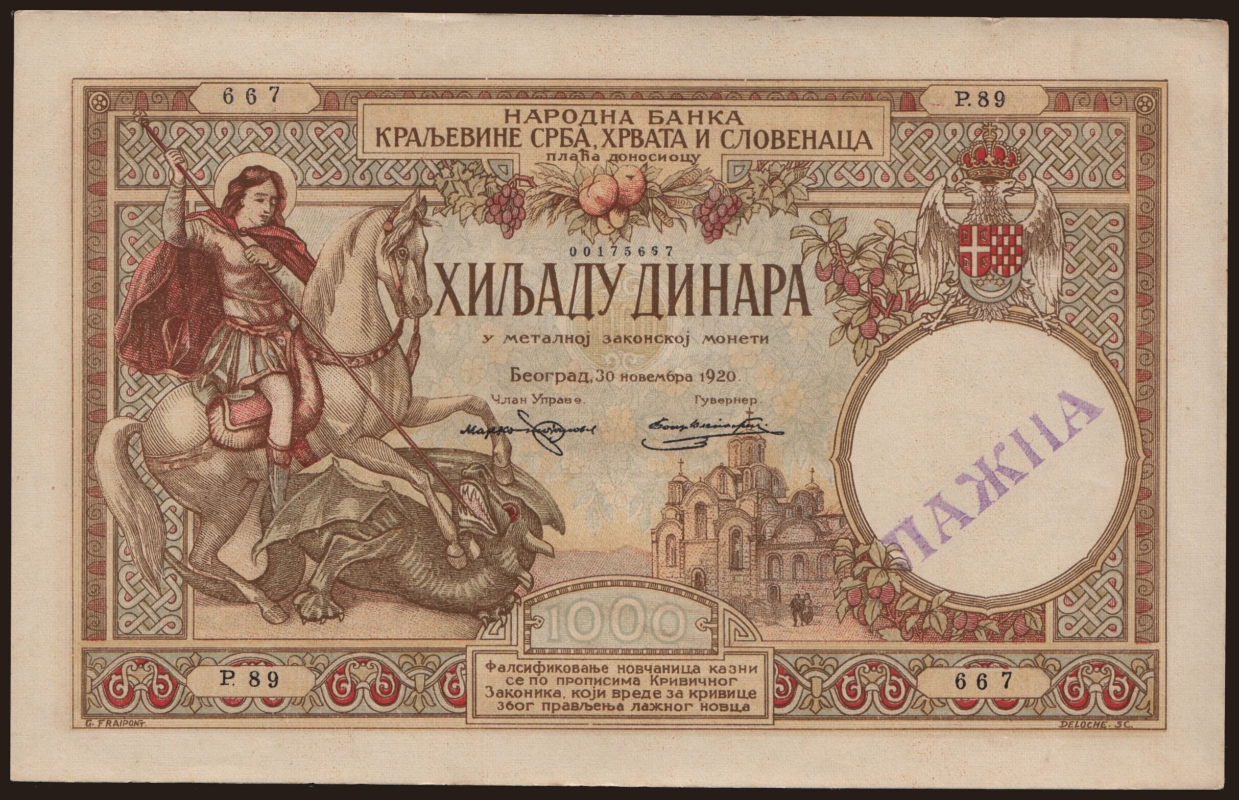 1000 dinara, 1920, falsum