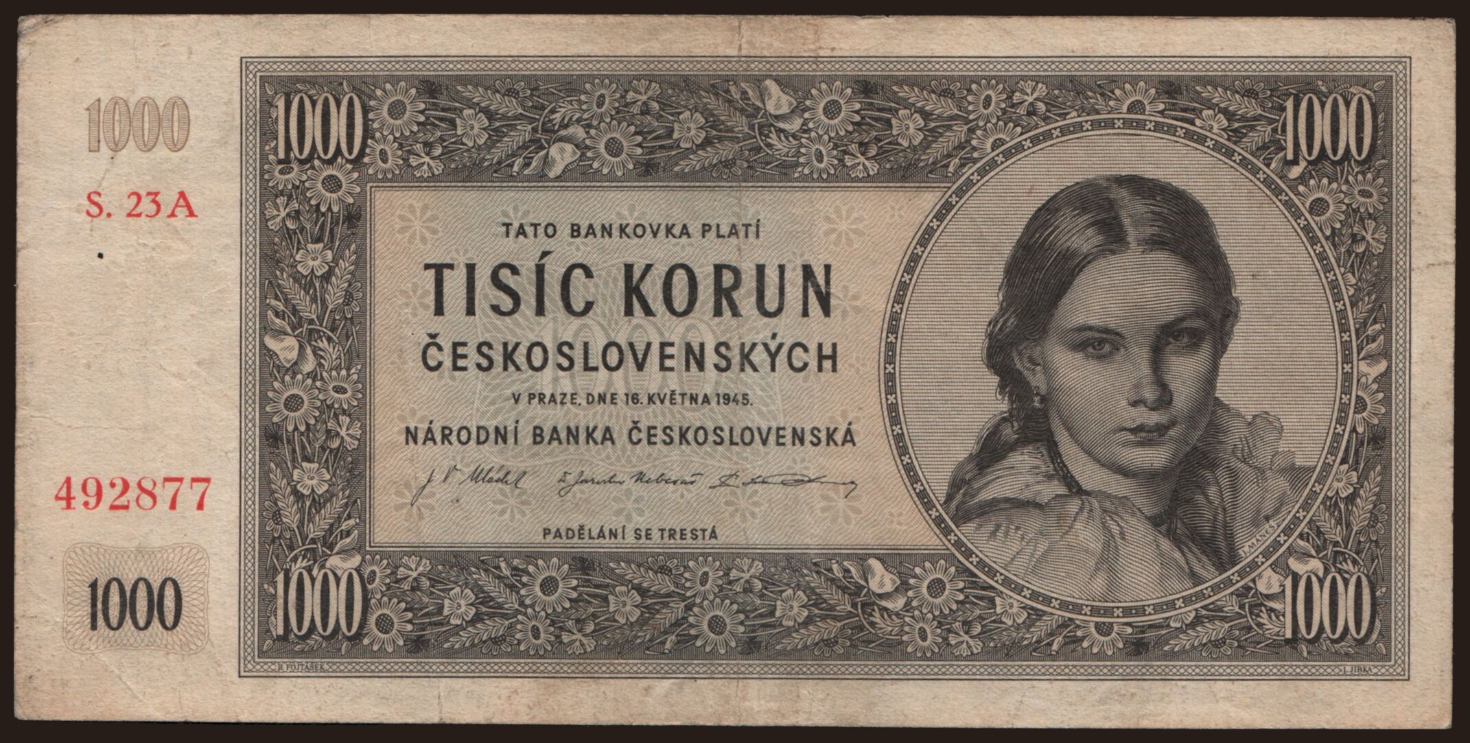 Čekoslovakija ir jos įpėdinės valstybės, Popierinės piniginės nuo 1945 iki 1951 metų