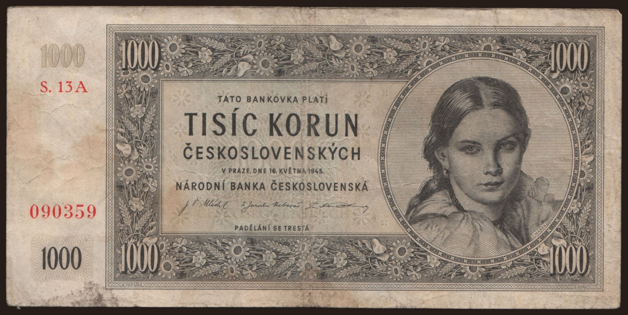 Čekoslovakija ir jos įpėdinės valstybės, Popierinės piniginės nuo 1945 iki 1951 metų