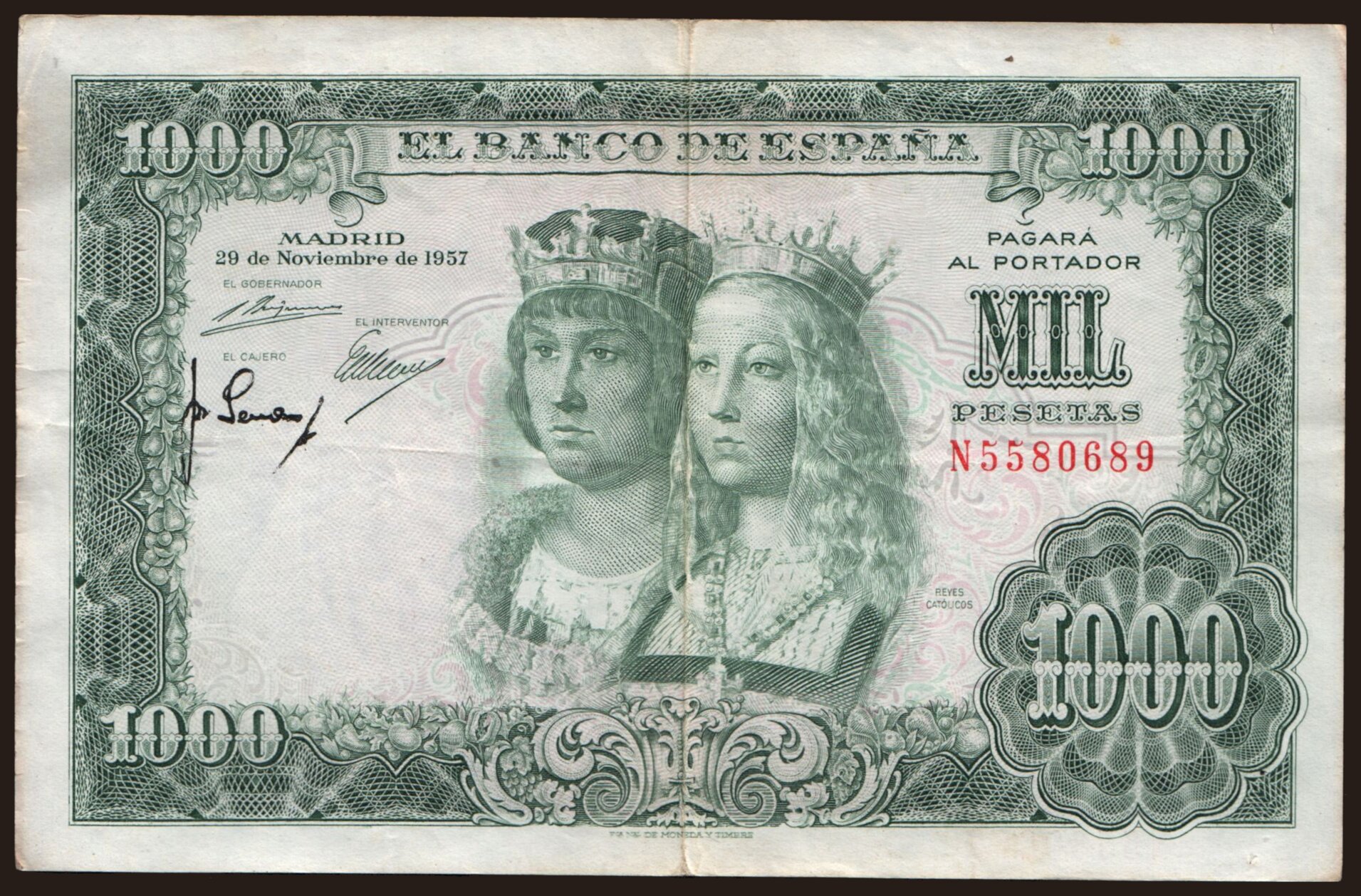 1000 pesetas, 1957