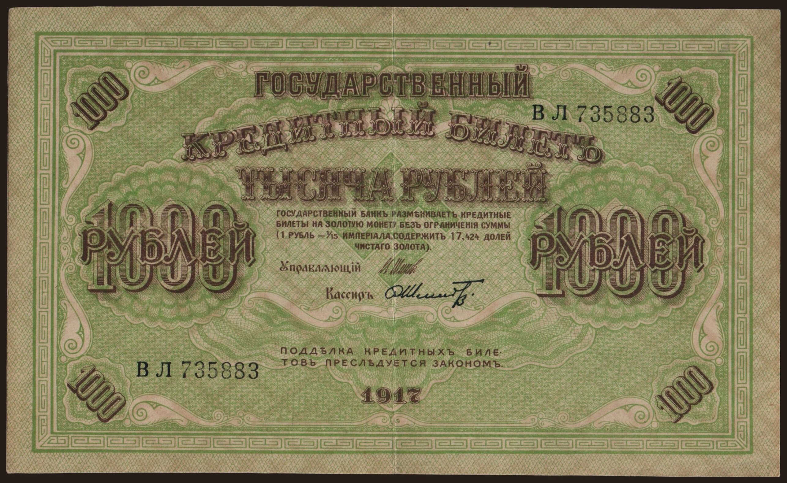 1000 rubel, 1917, Shipov/ F. Schmidt, falsum