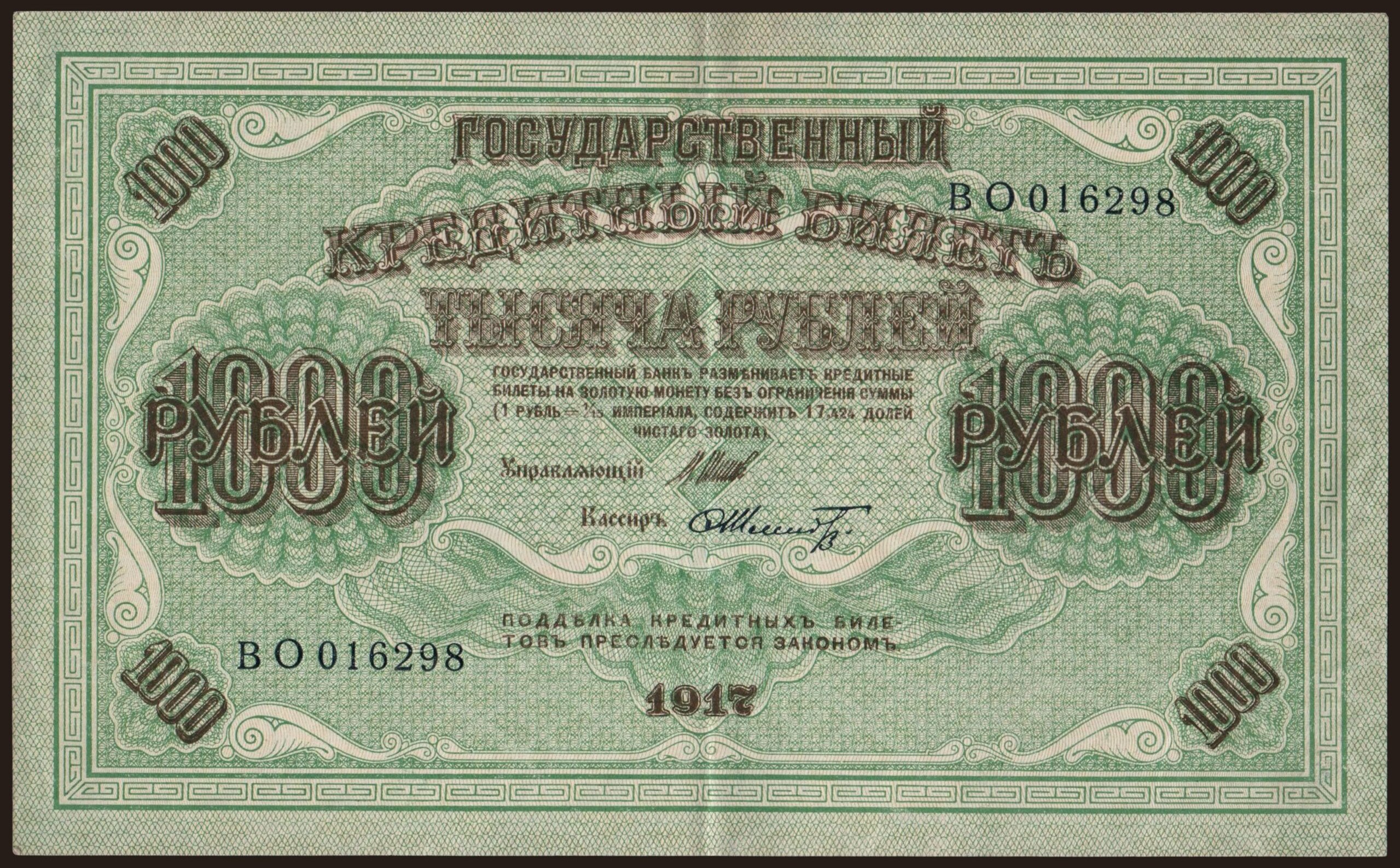 1000 rubel, 1917, Shipov/ F. Schmidt