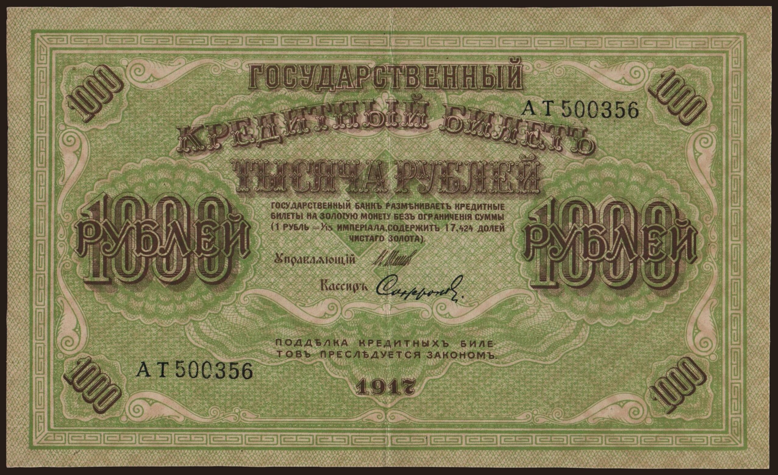 1000 rubel, 1917, Shipov/ Sofronow, falsum