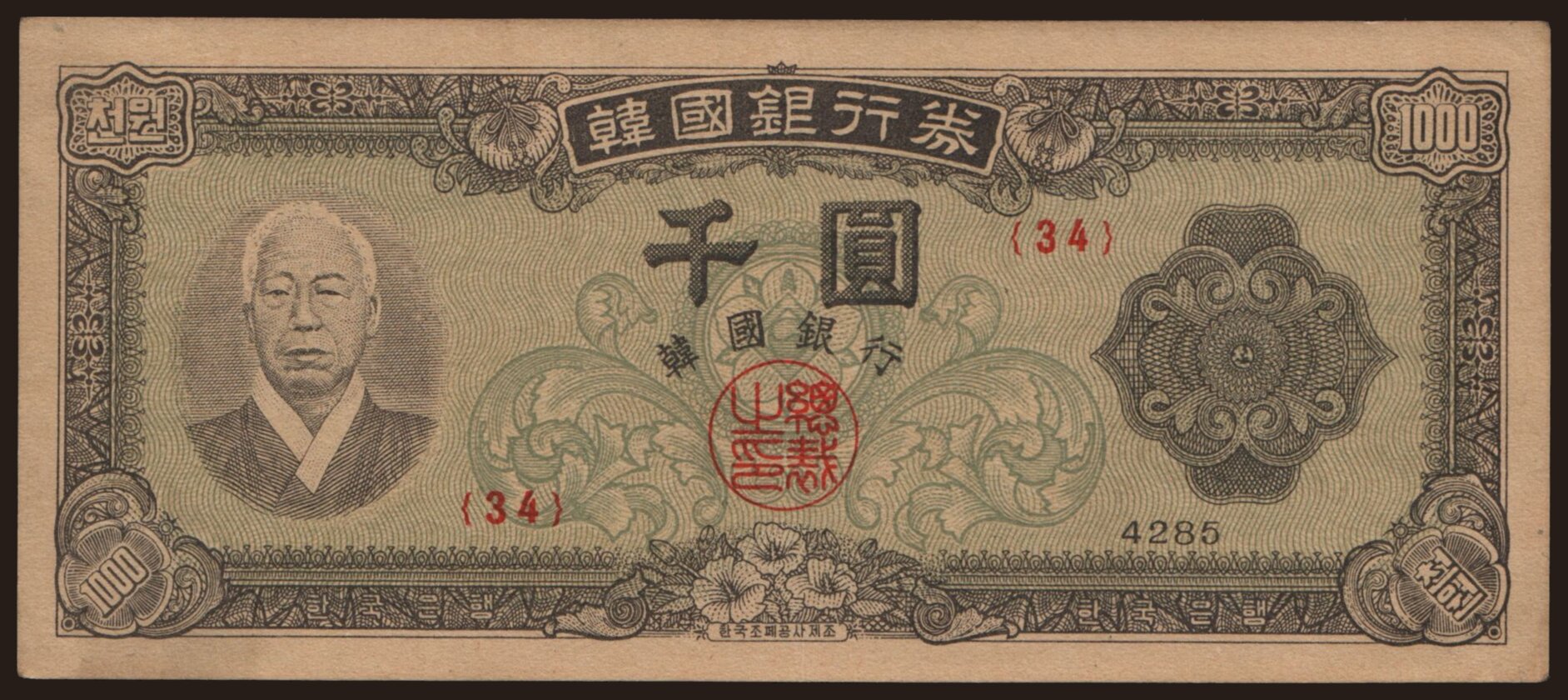 1000 won, 1952