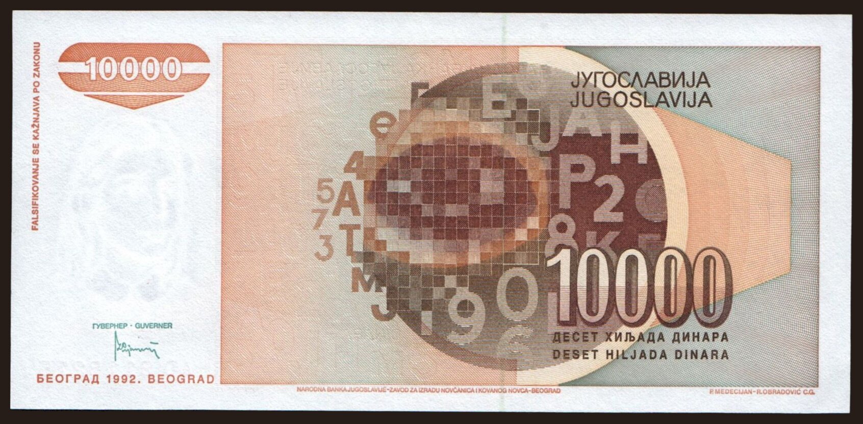 10.000 dinara, 1992