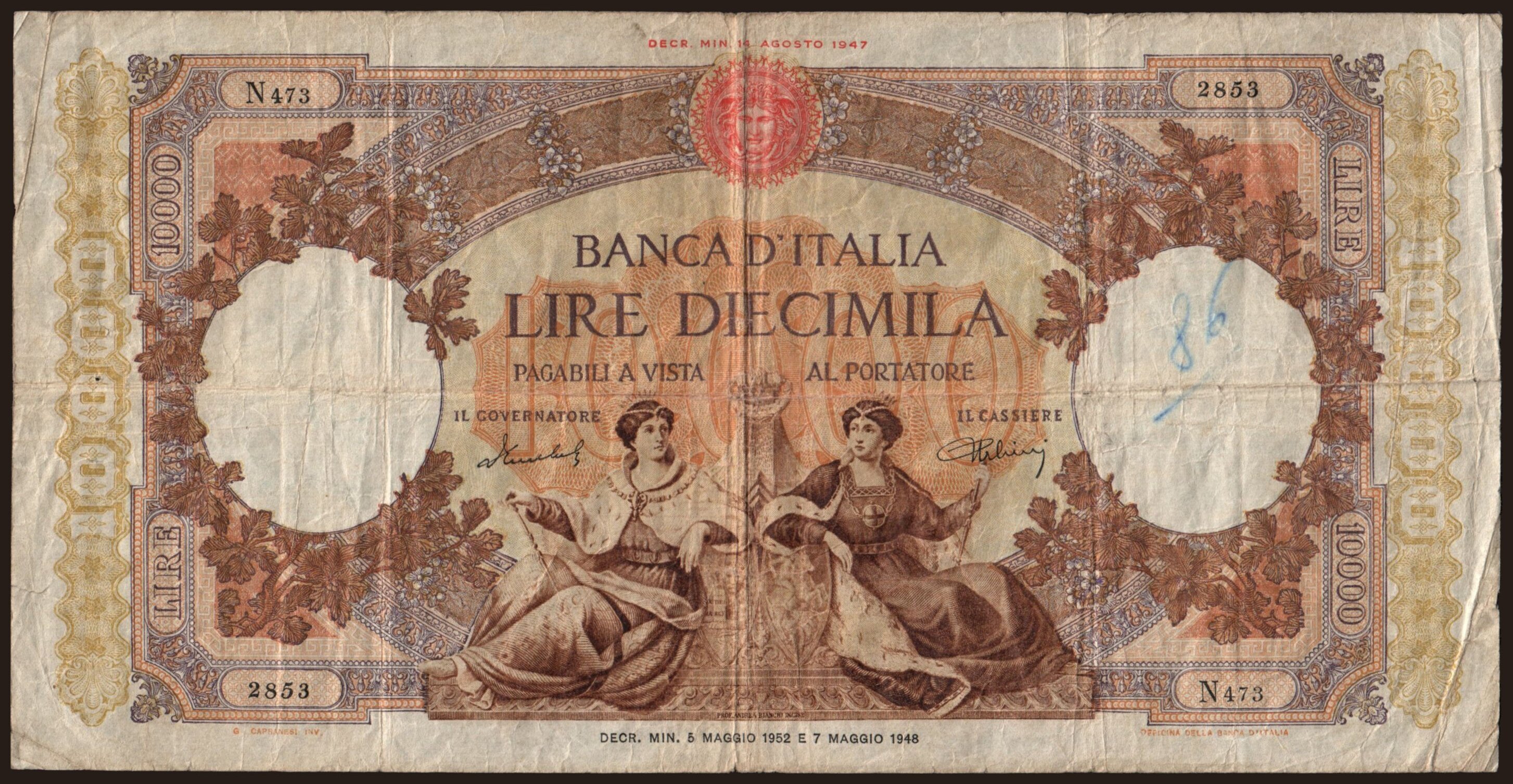 10.000 lire, 1952