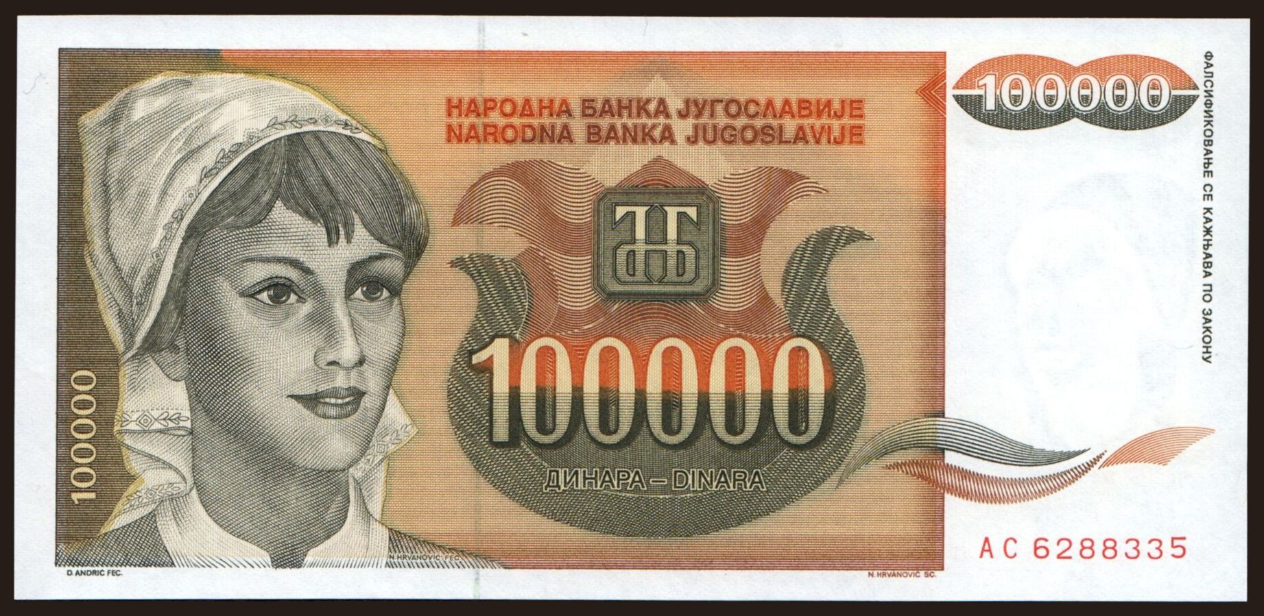 100.000 dinara, 1993