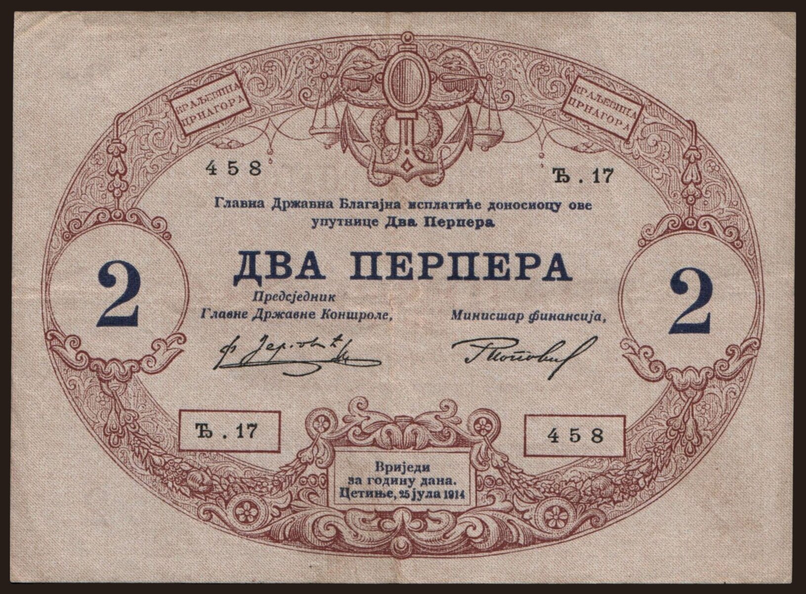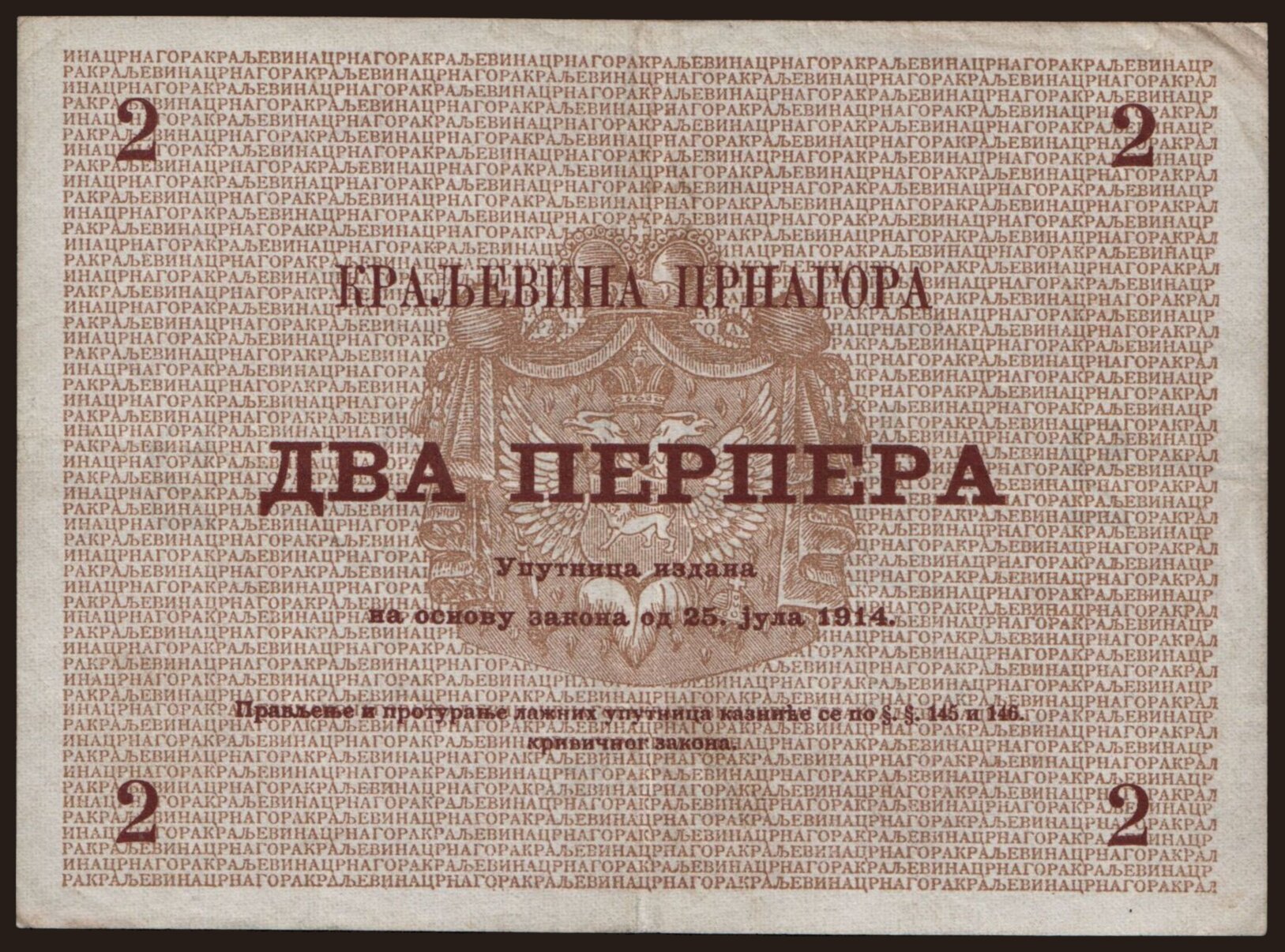 2 perpera, 1914