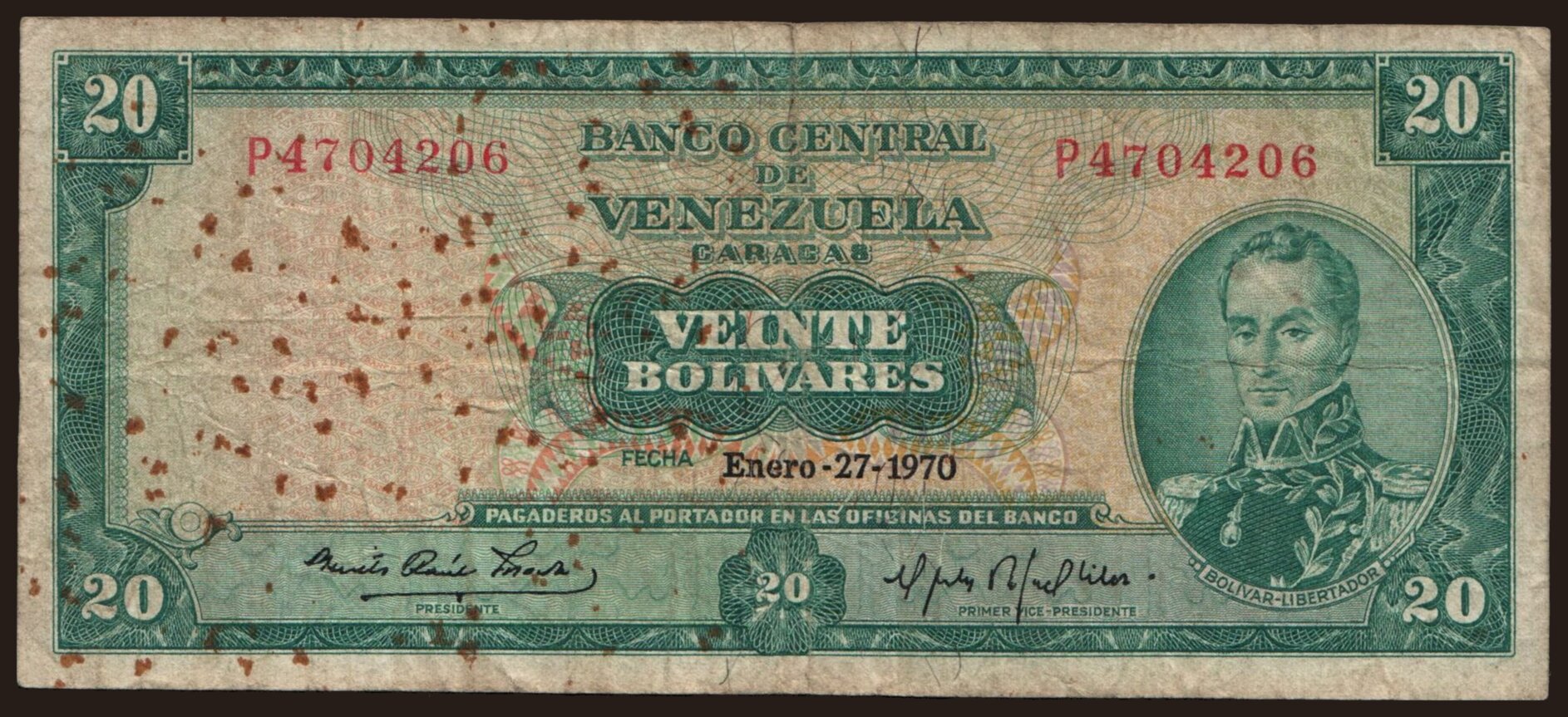 20 bolivares, 1970