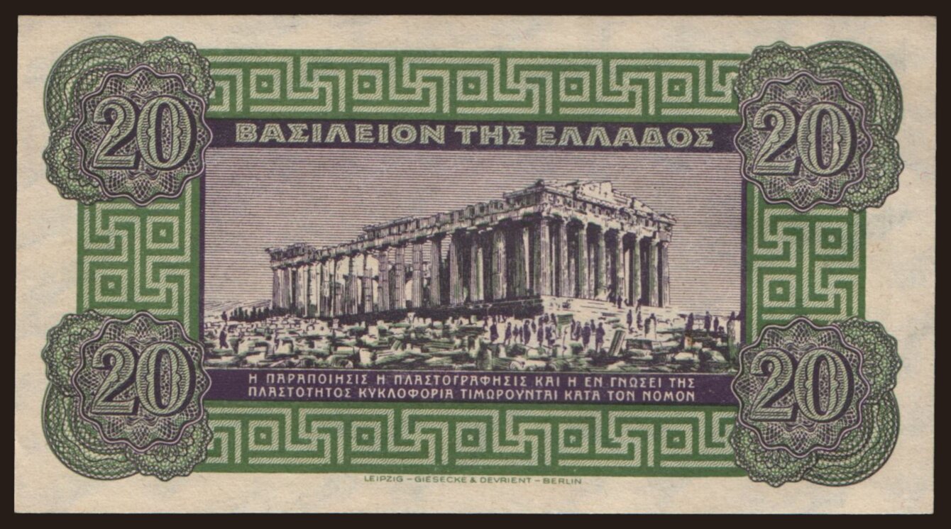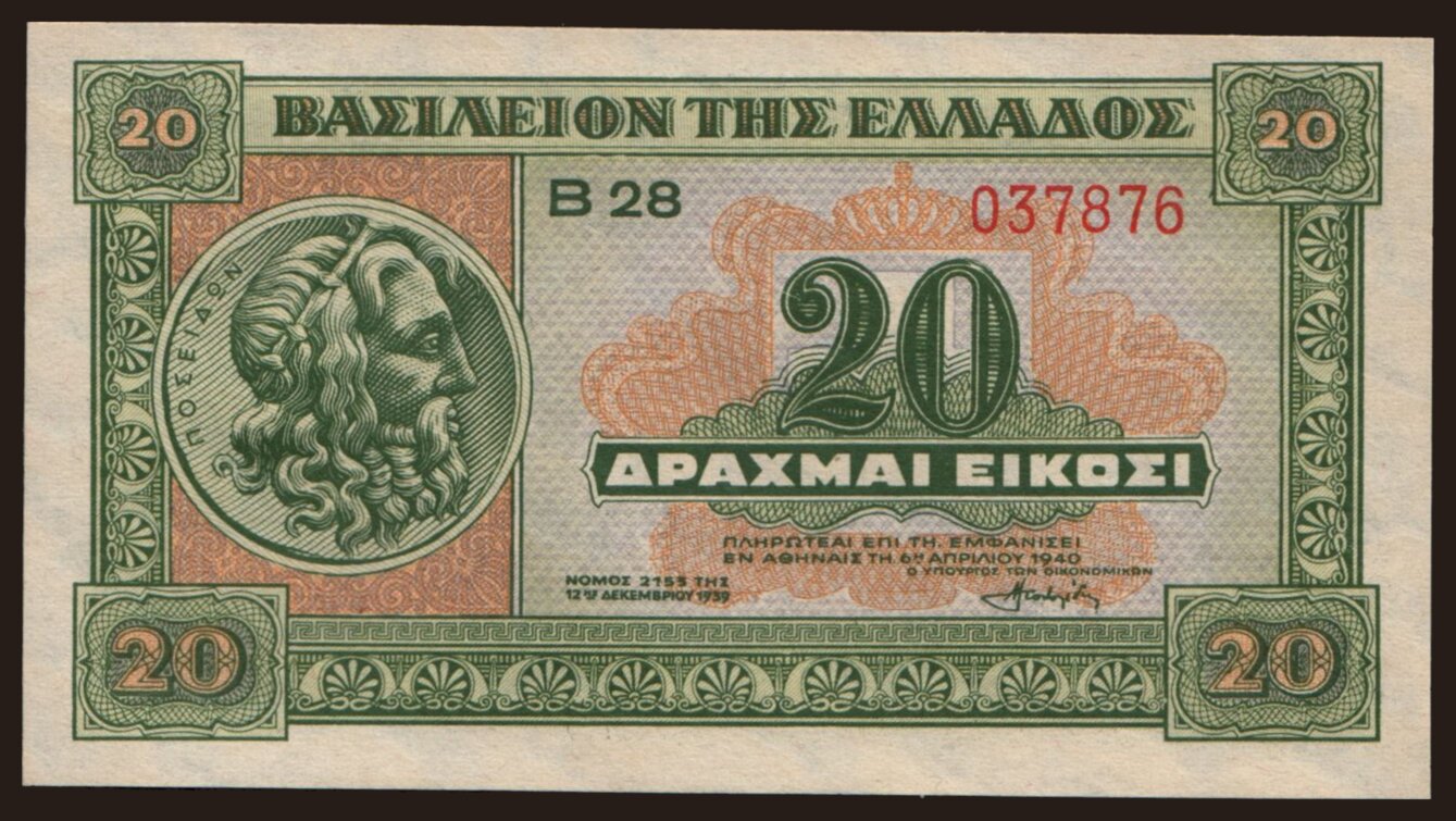 20 drachmai, 1940