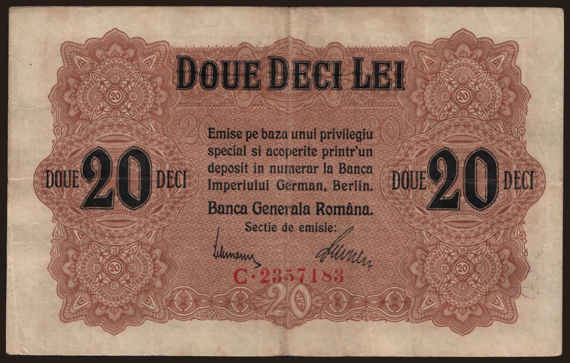 Romania, Banca Generala Romana, 1917