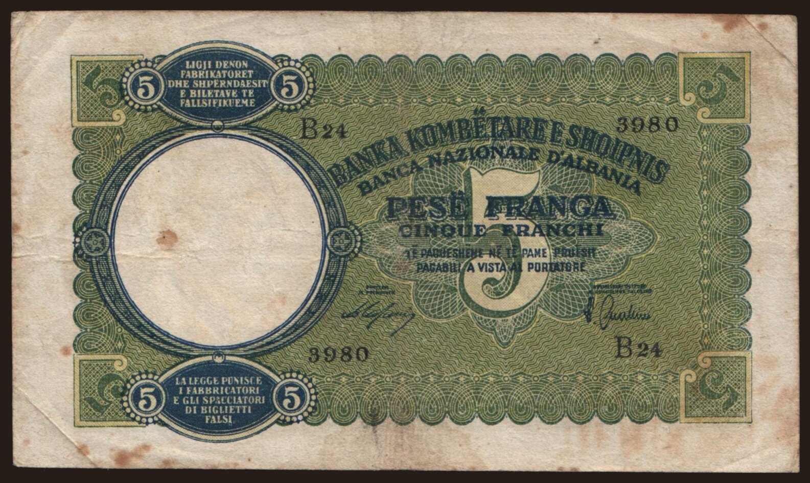 5 franga, 1939