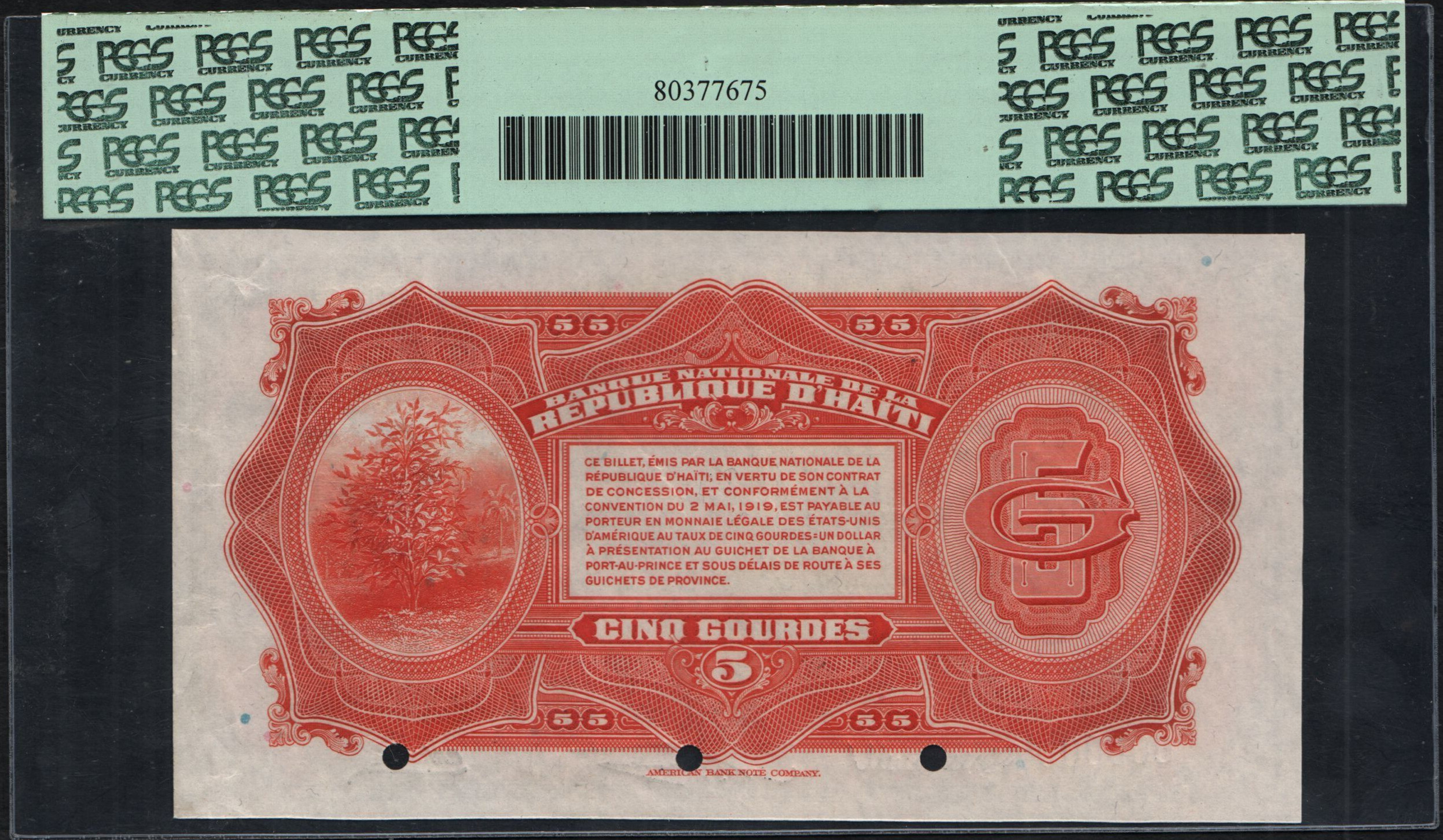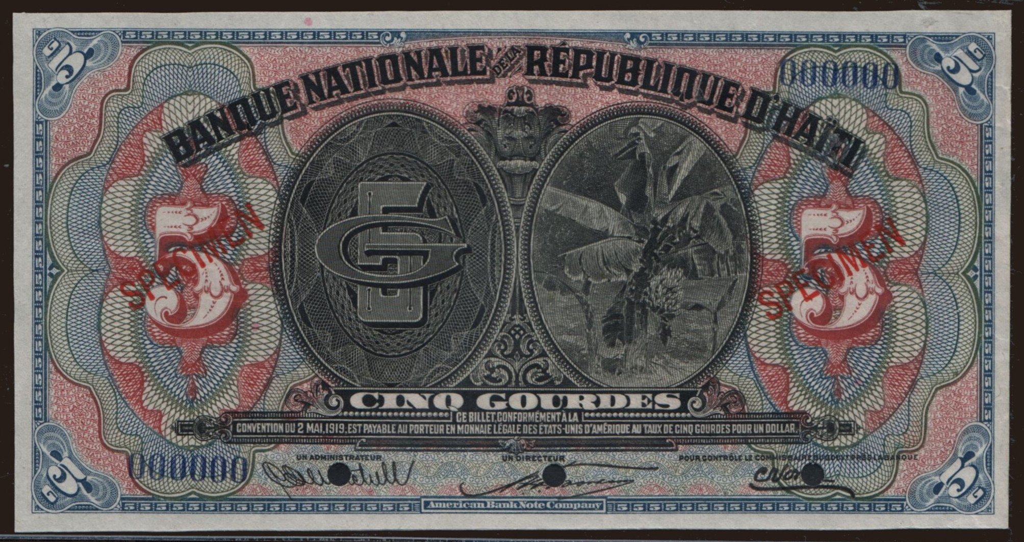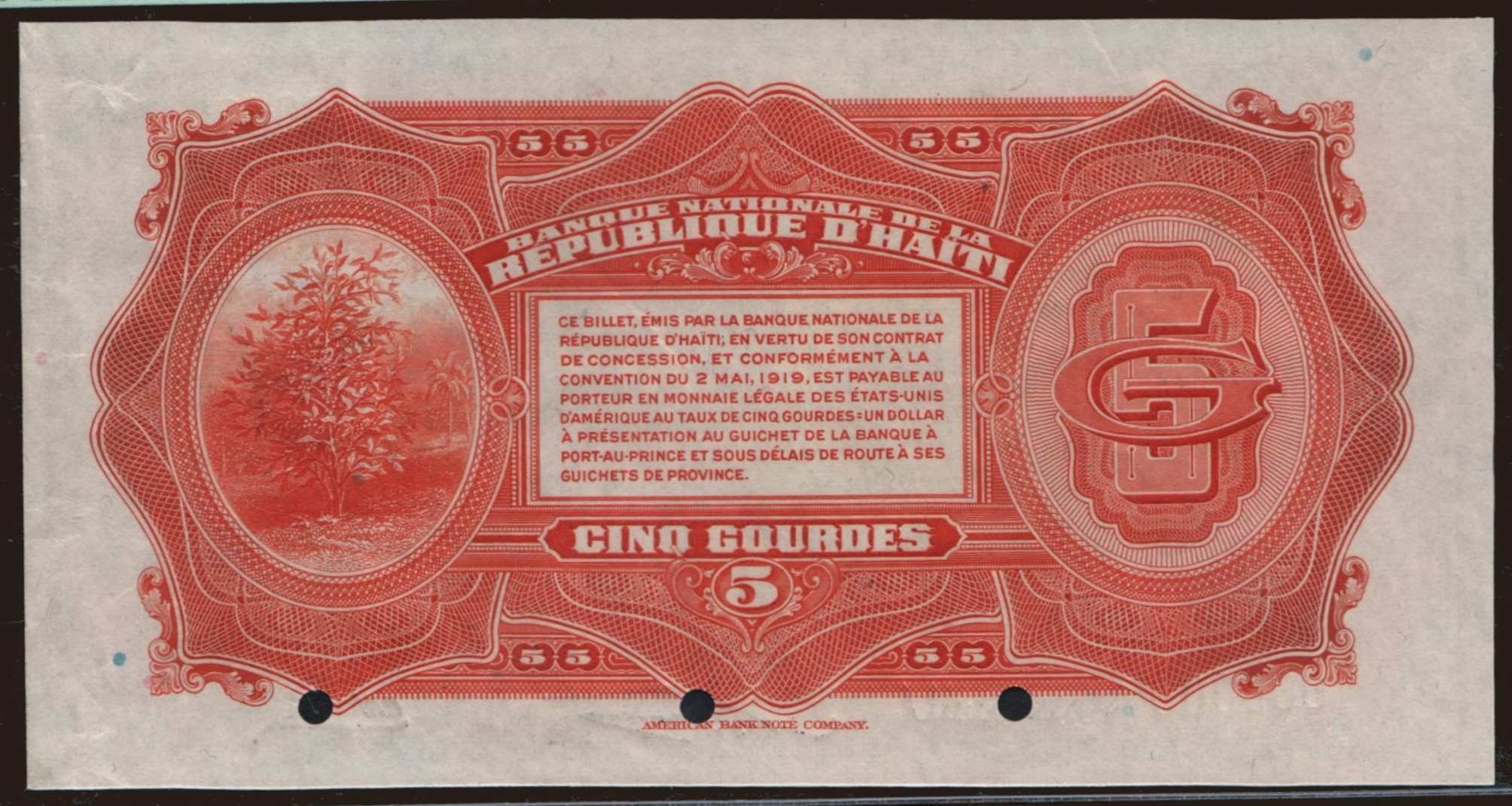 5 gourdes, 1919 (1920), SPECIMEN