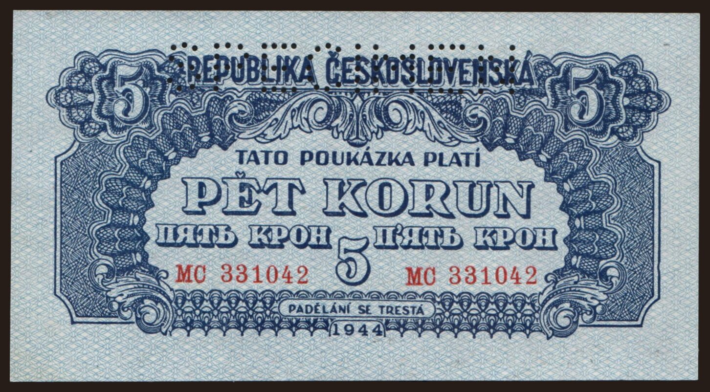 Česko-Slovensko a nástupnícke štáty, Poukážky, 1944-45