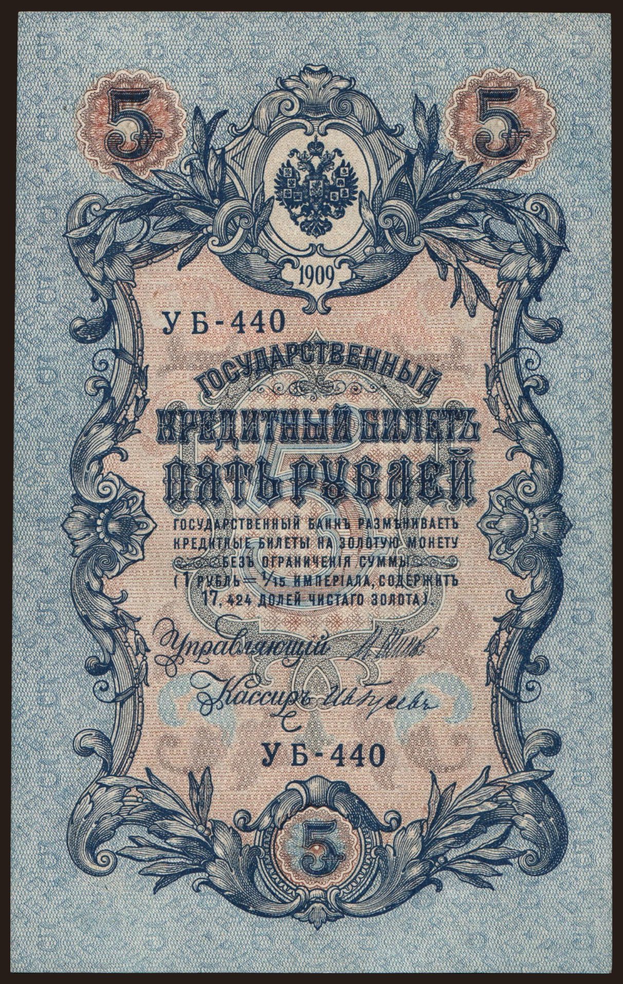 5 rubel, 1909, Shipov/ Iw.Gusew