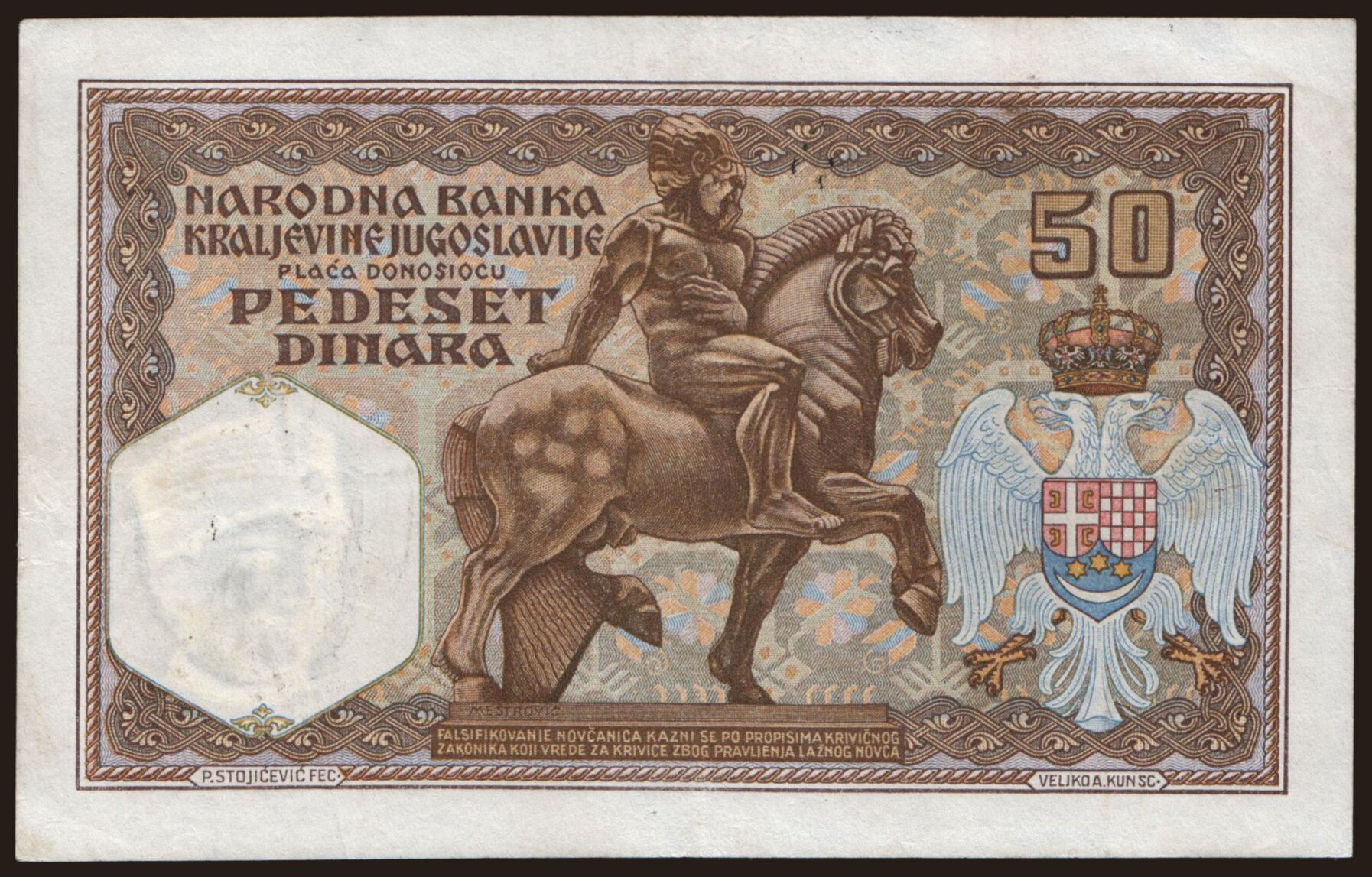 50 dinara, 1931, VERIFICATO