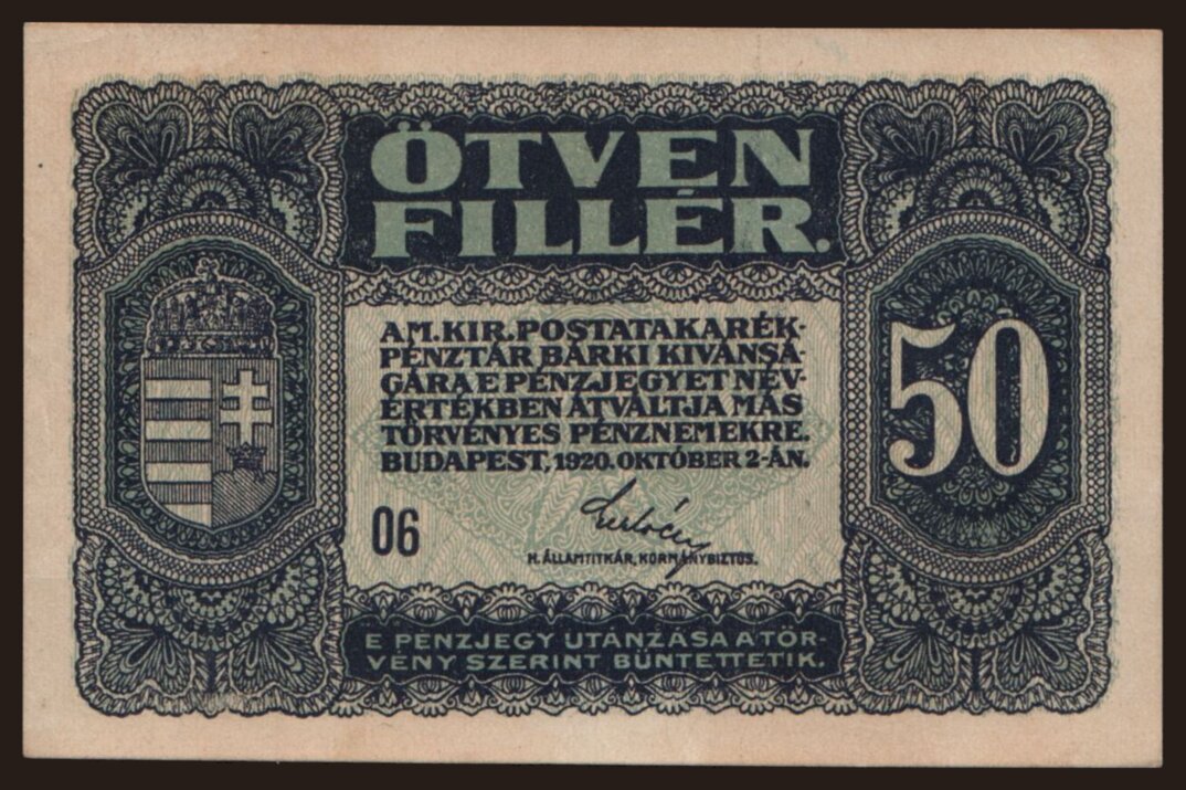 50 fillér, 1920