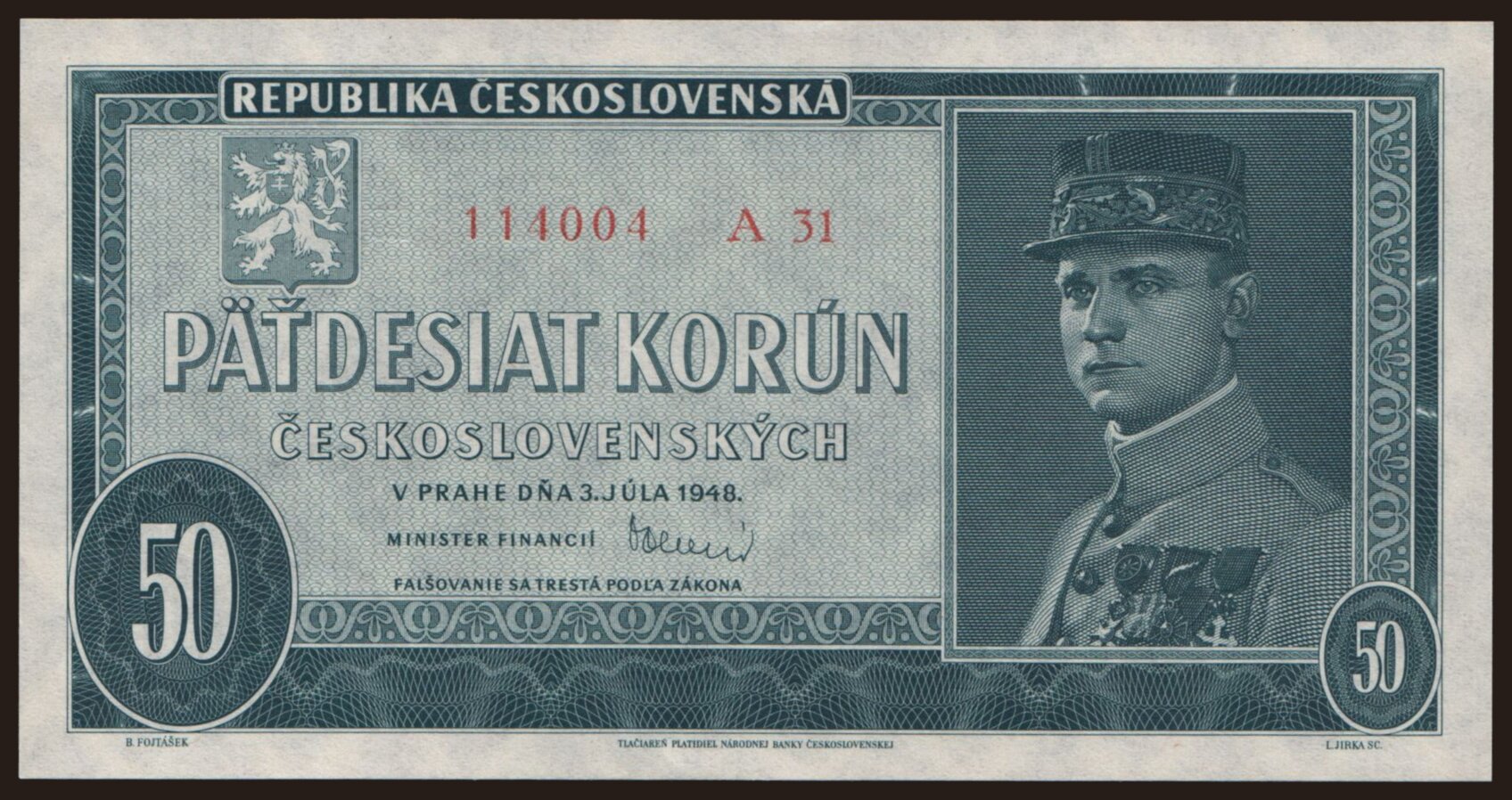 Τσεχοσλοβακία και κράτη διάδοχοι, Χαρτονόμισμα από το 1945 έως το 1951