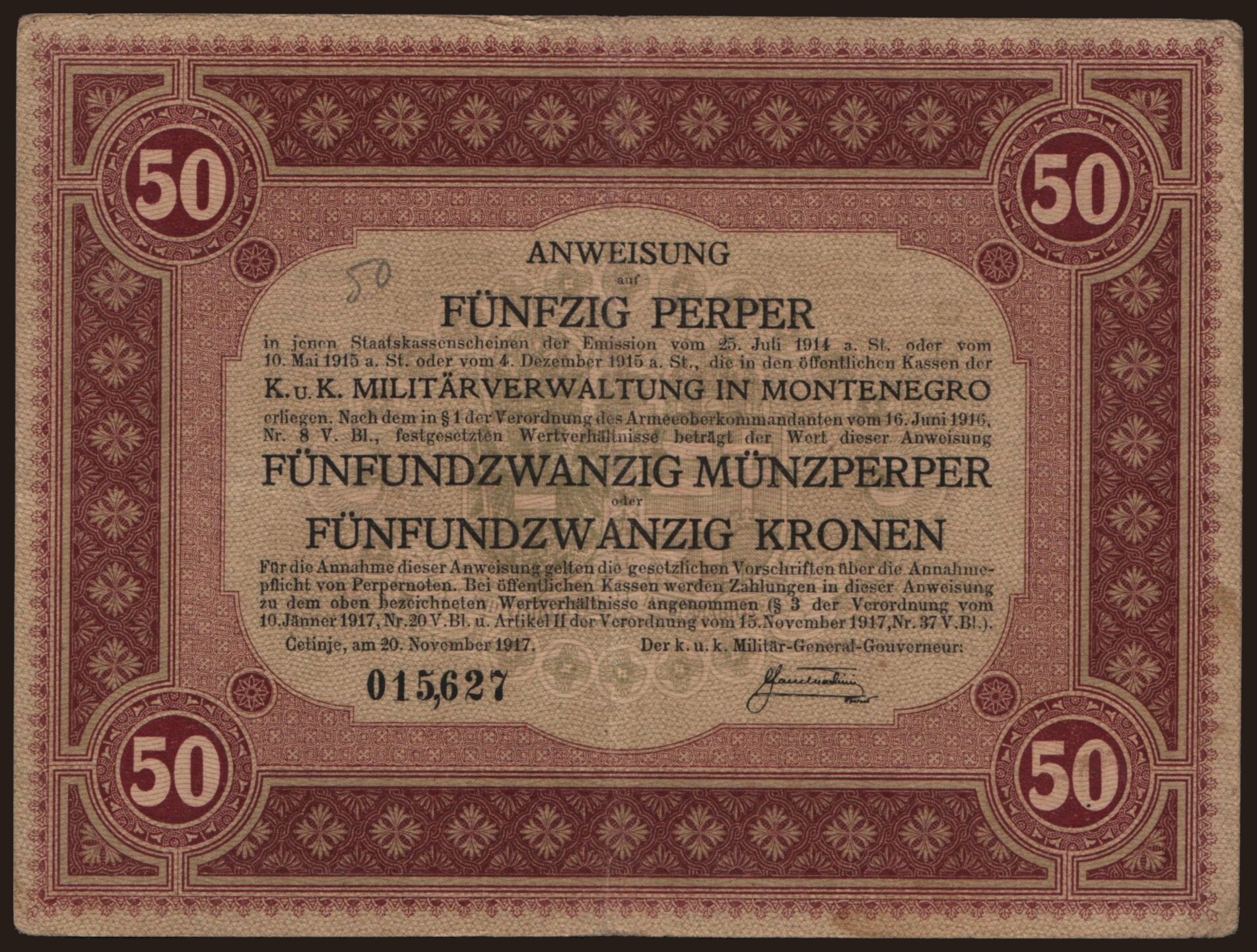50 perper, 1917
