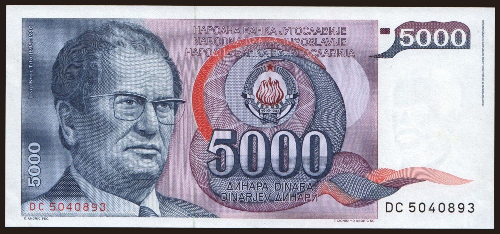 5000 dinara, 1993