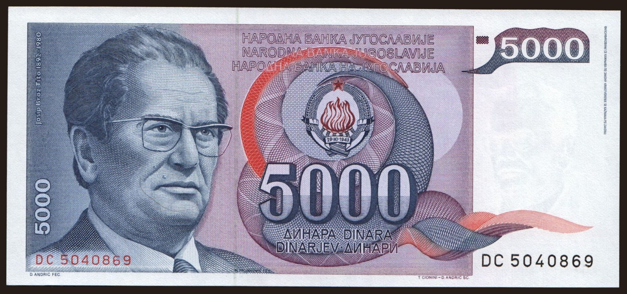 5000 dinara, 1993