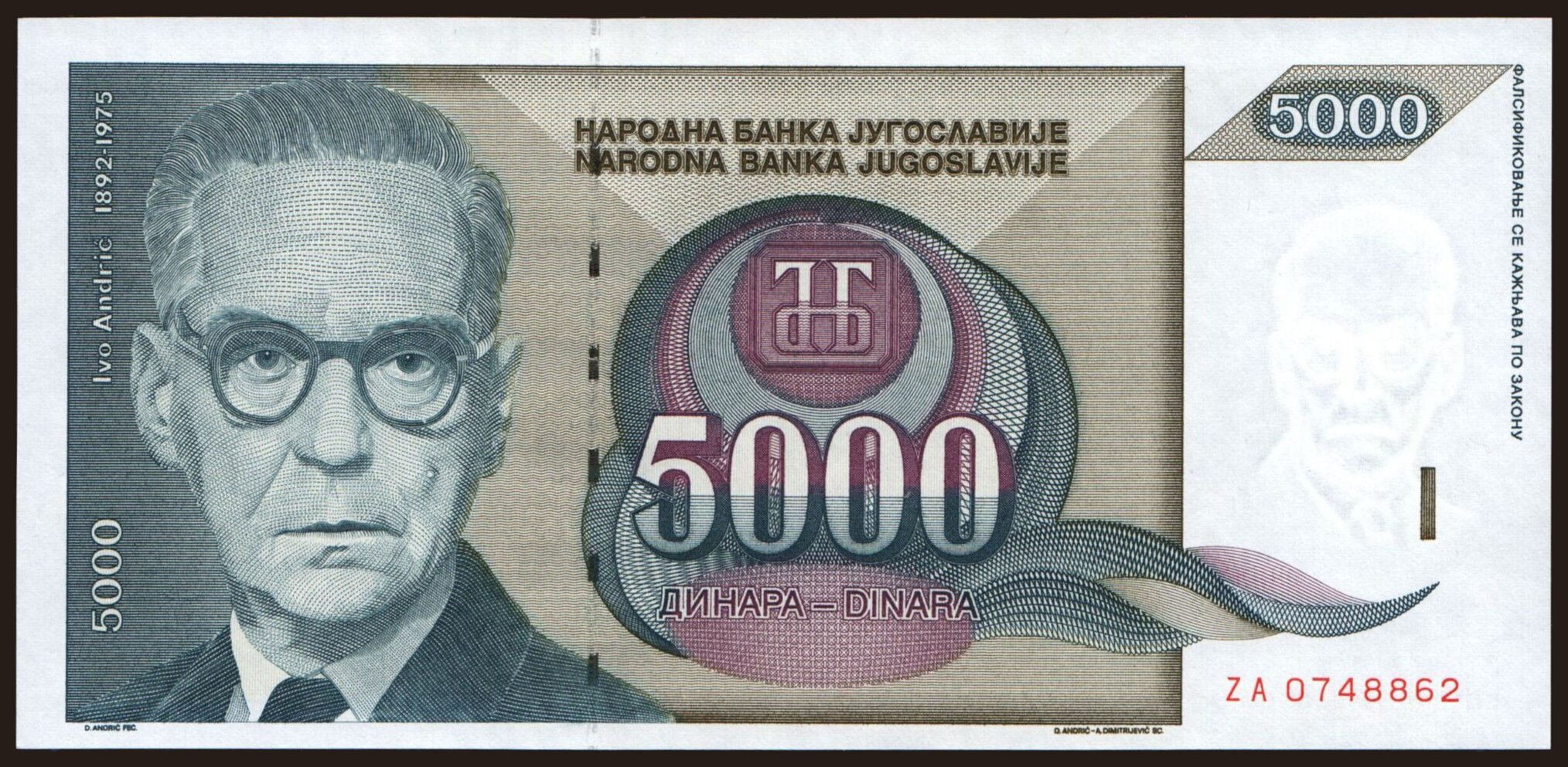 5000 dinara, 1992