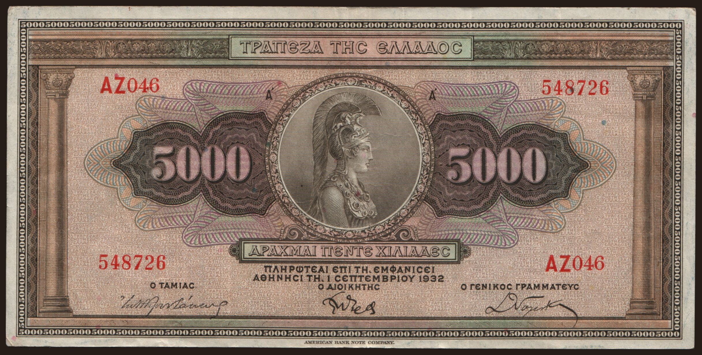5000 drachmai, 1932