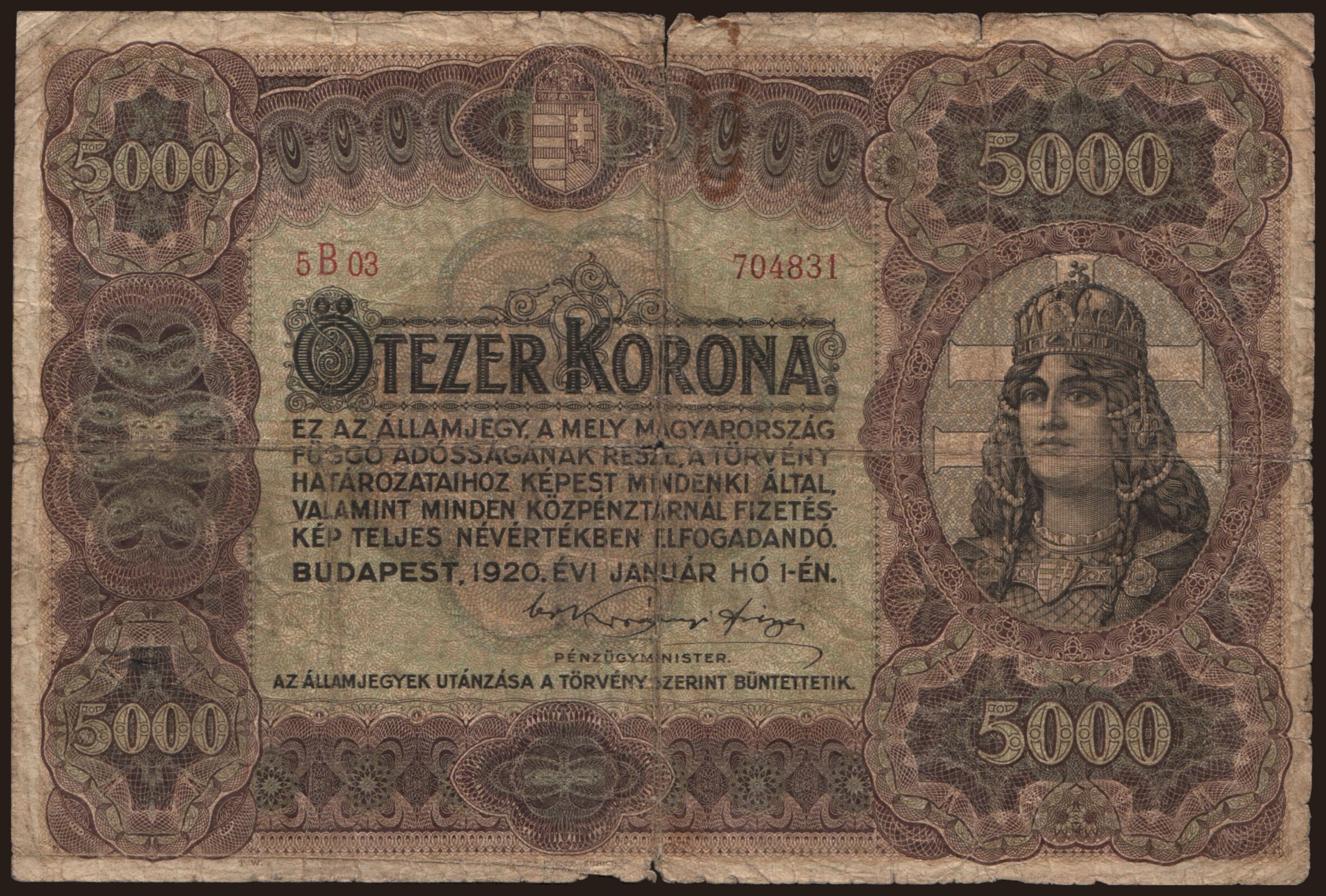 5000 korona, 1920