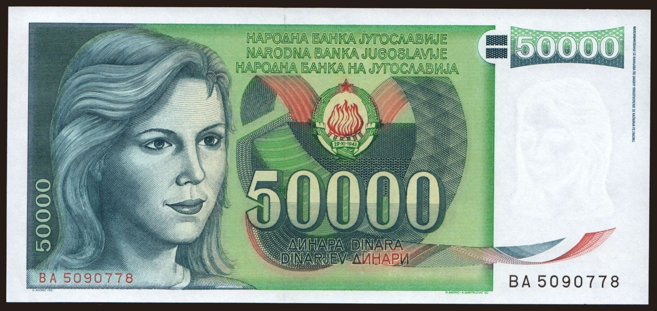 50.000 dinara, 1988