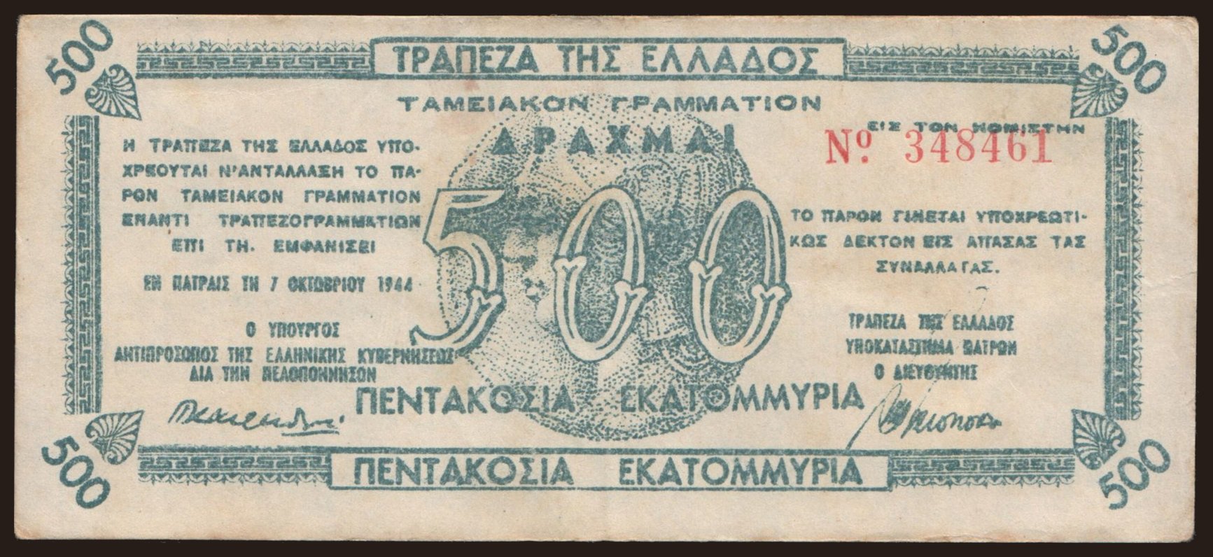 Patras, 500.000.000 drachmai, 1944