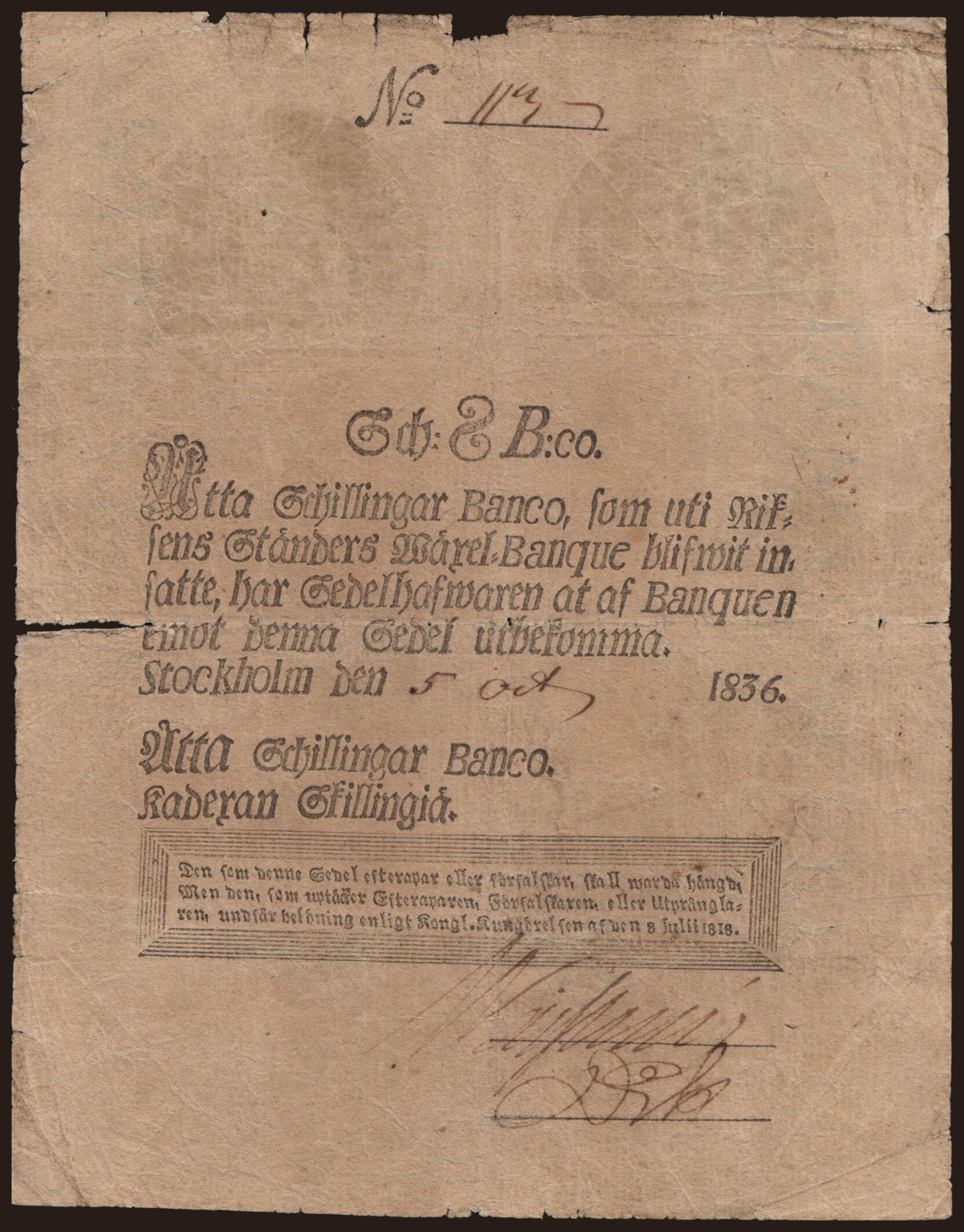 8 schillingar, 1836