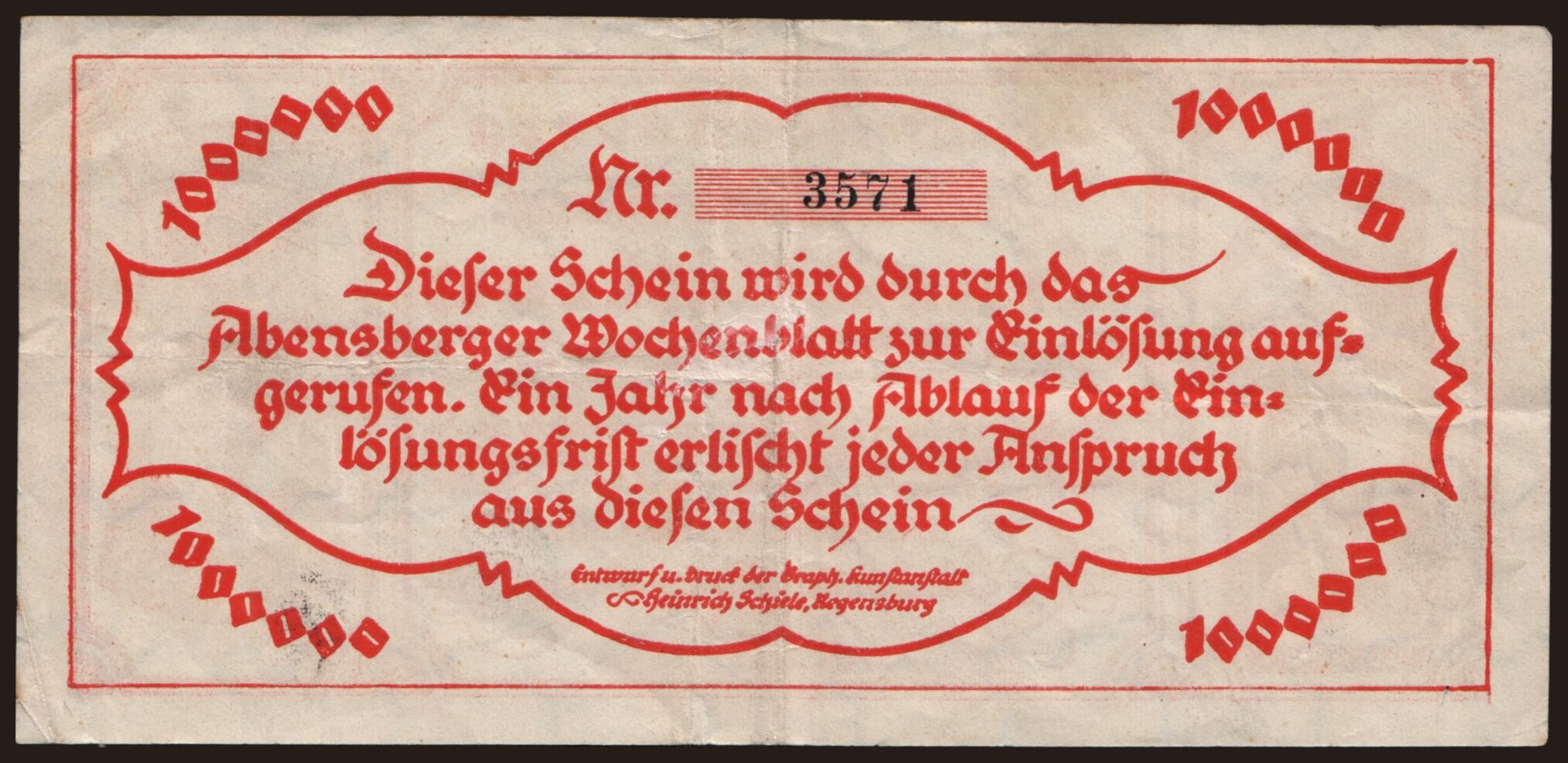 Abensberg/ Stadt, 1.000.000 Mark, 1923