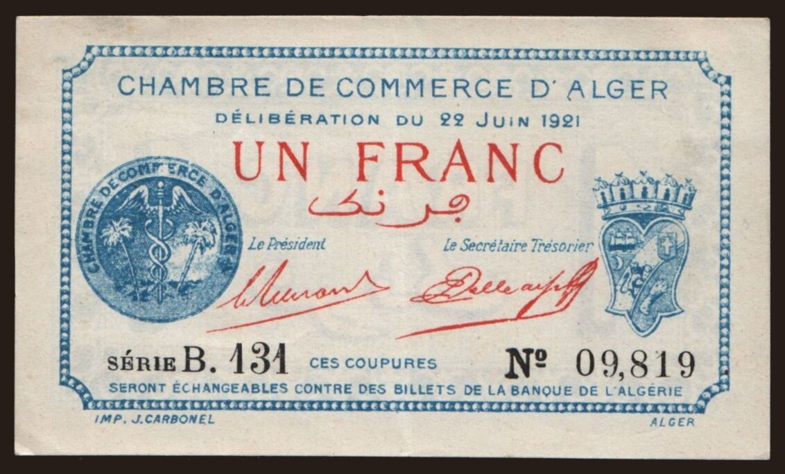 Alger, 1 franc, 1921
