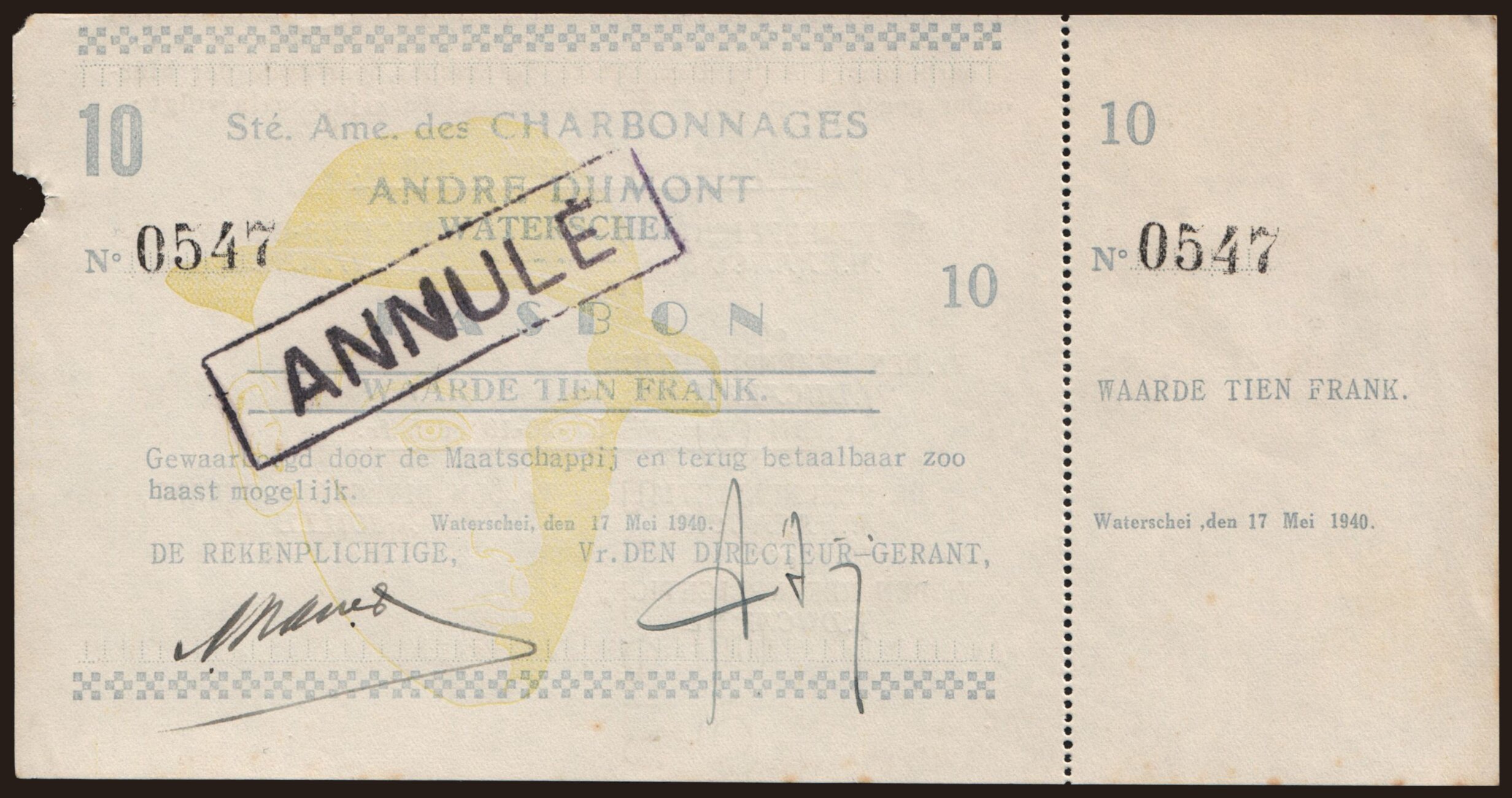 Andre Dumont Waterschei, 10 frank, 1940