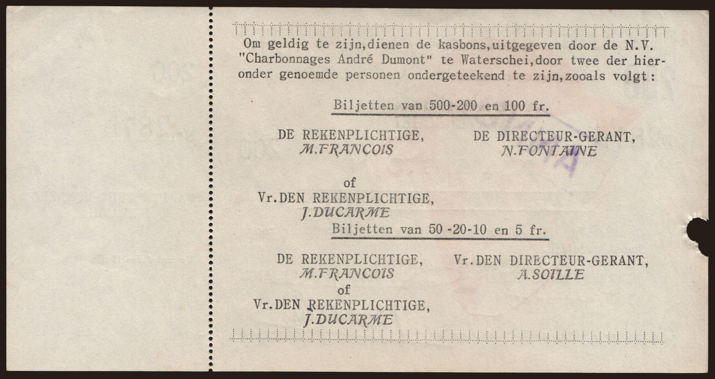 Andre Dumont Waterschei, 500 frank, 1940