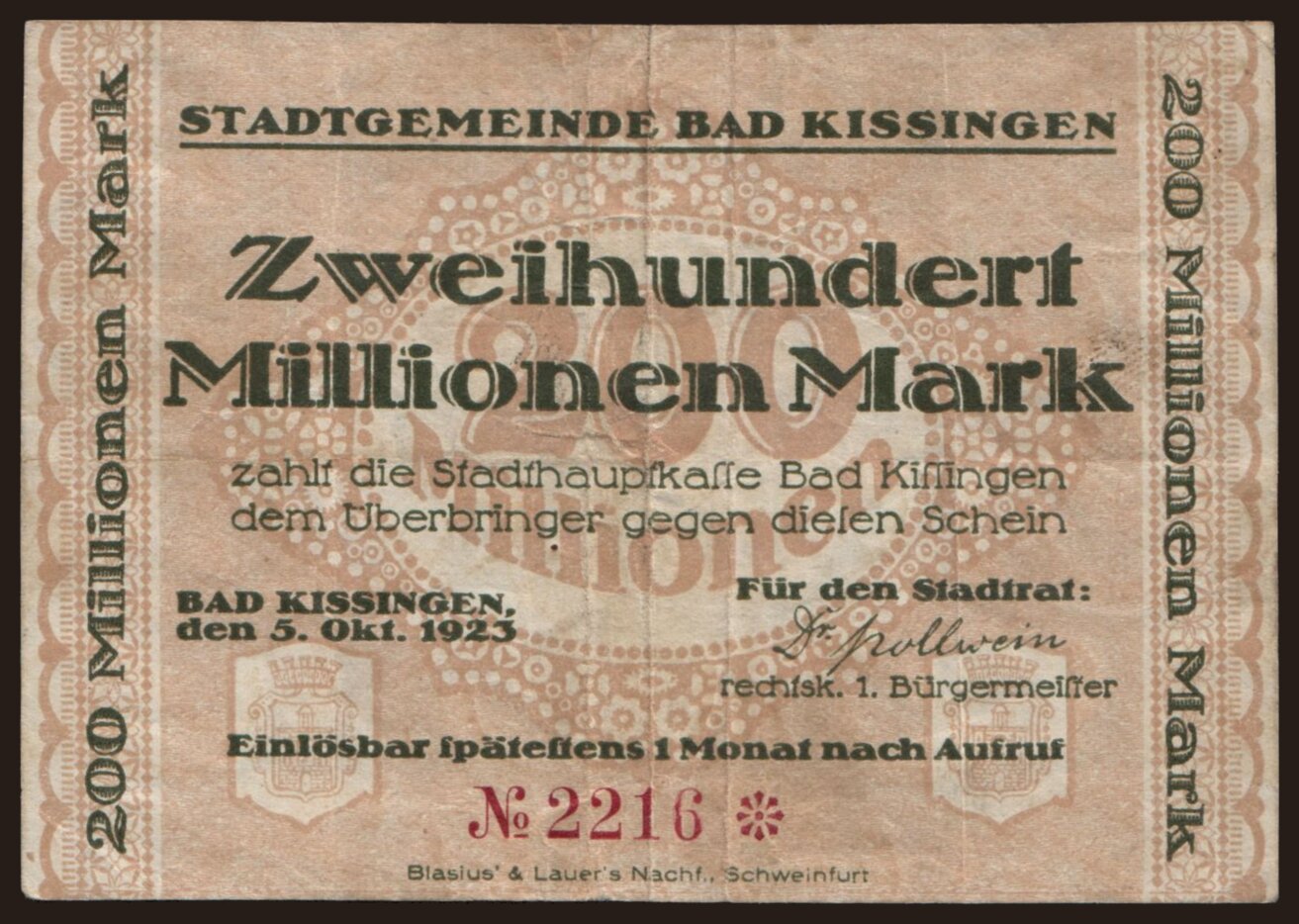 Bad Kissingen/ Stadt, 200.000.000 Mark, 1923
