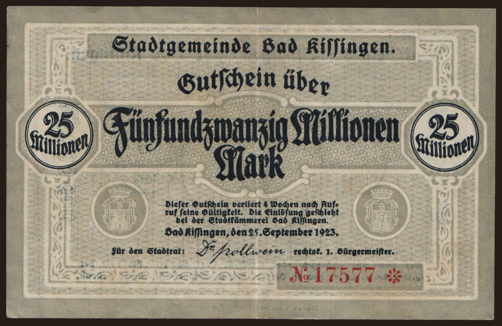 Bad Kissingen/ Stadt, 25.000.000 Mark, 1923